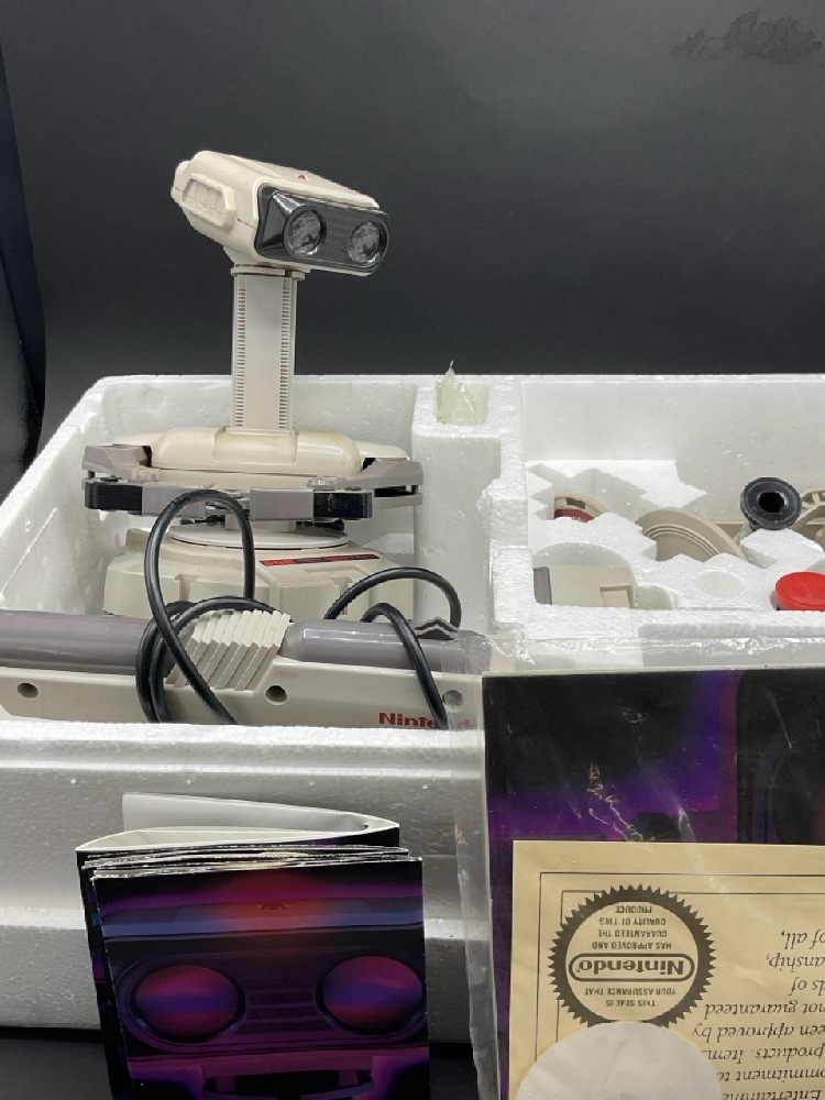 Nintendo NES Rob The Robot c. 1985. Not tested. Comes with original styrofoam storage box and manual. No outer box.
