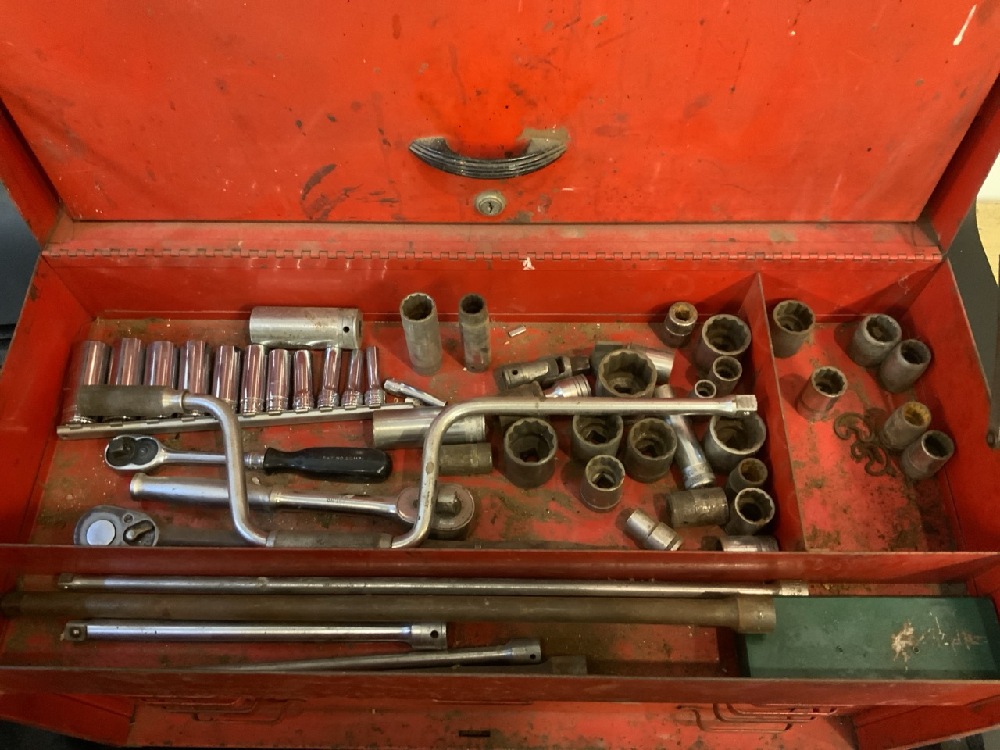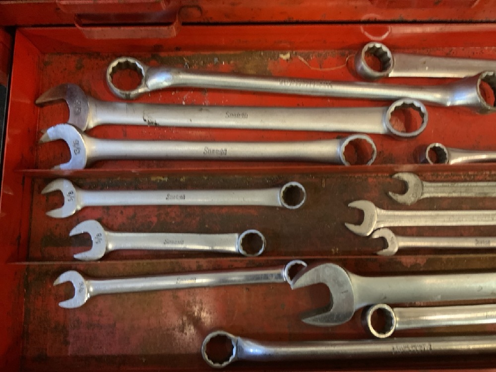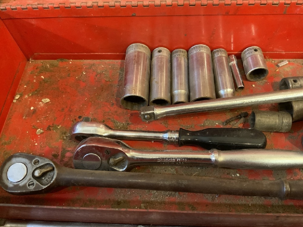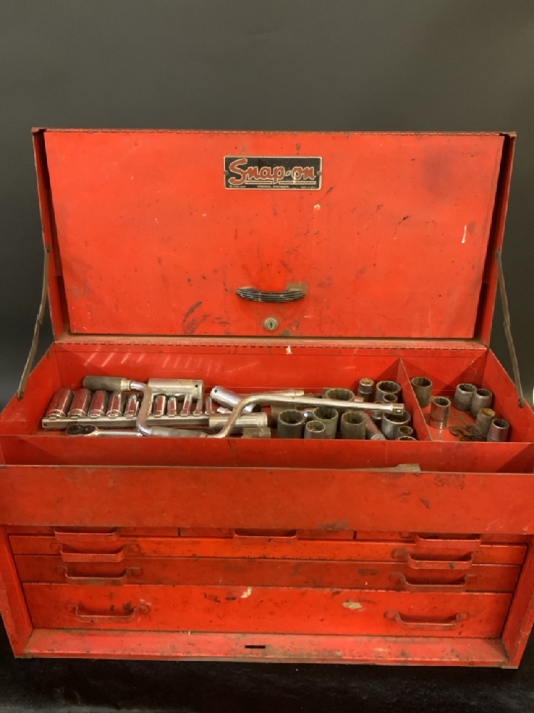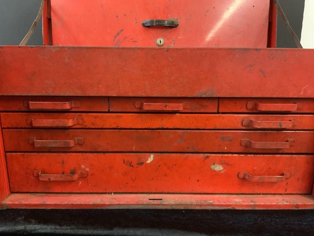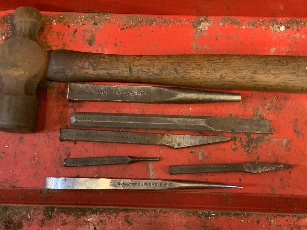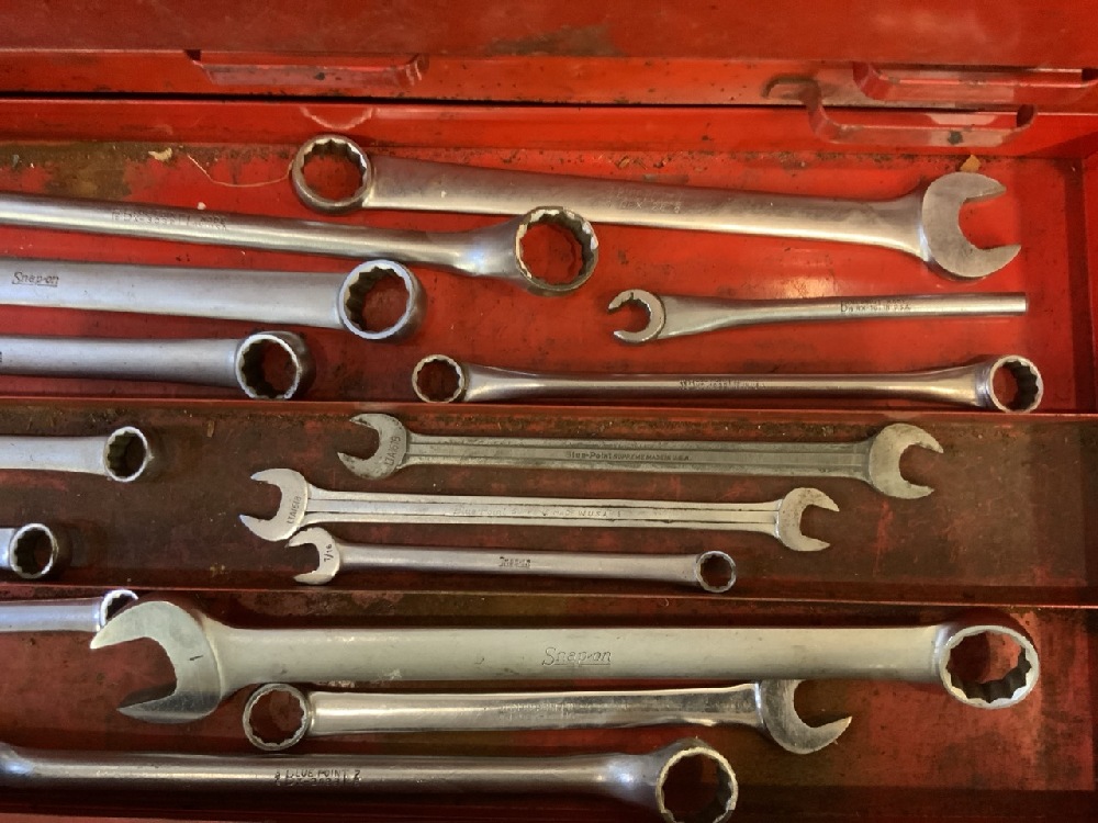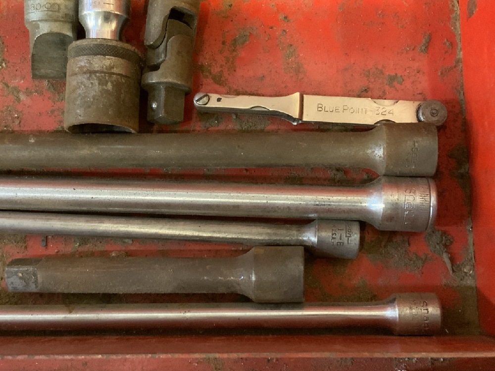 Vintage Snap On Tool Box Full Of Vintage Snap On and Blue Point Tools.