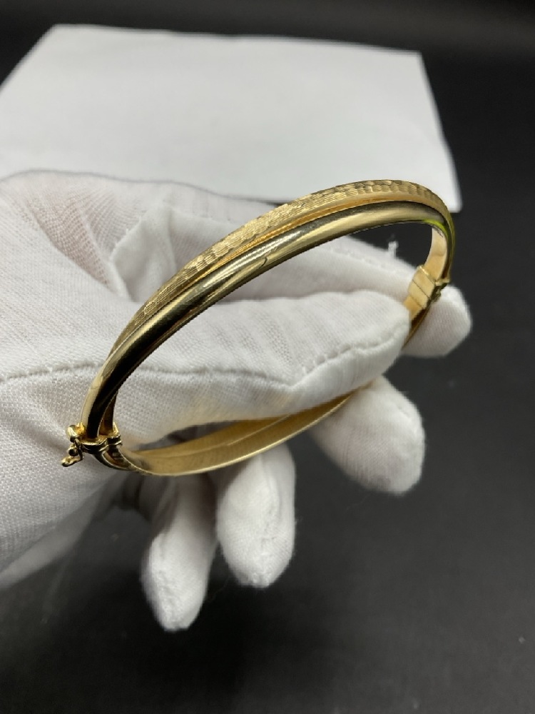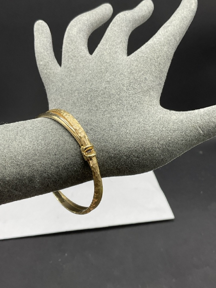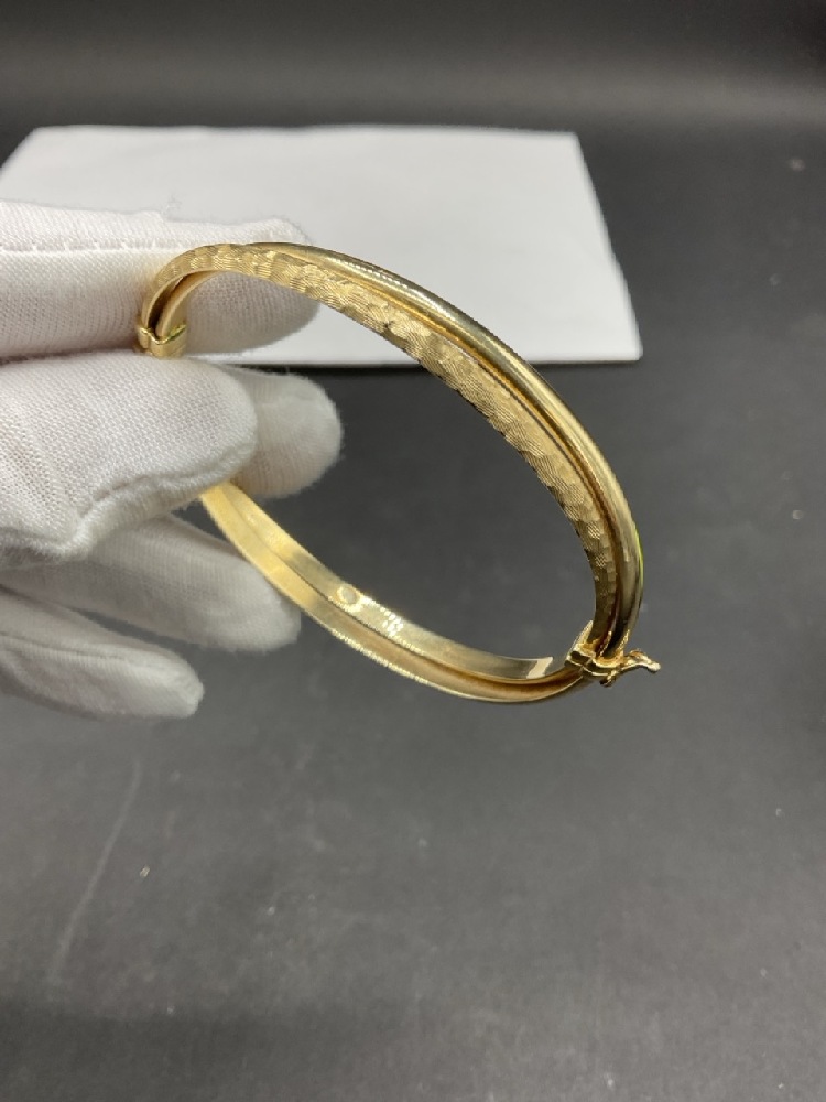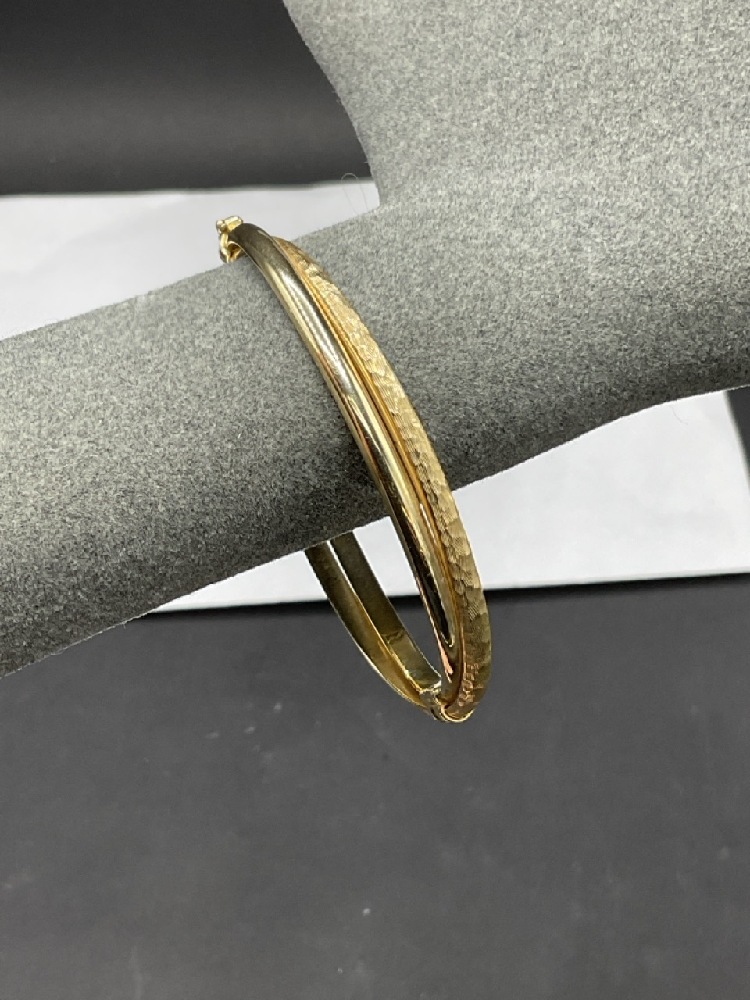 14K Hinged Yellow Gold Double Bangle Bracelet. Dimensions: 3" length. Total weight: 8.7 grams.