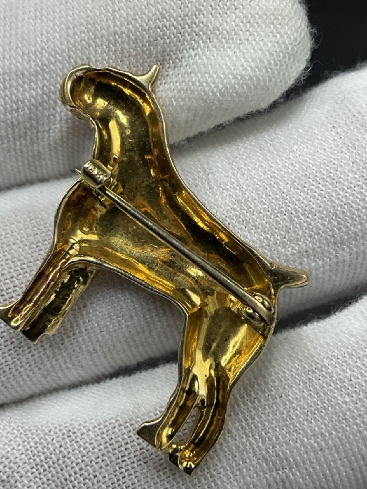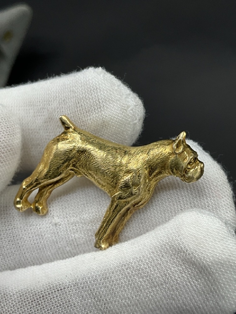 14K yellow gold Boxer dog brooch/pin. Total weight: 11.5 grams Dimensions: 1” x 1 1/2”