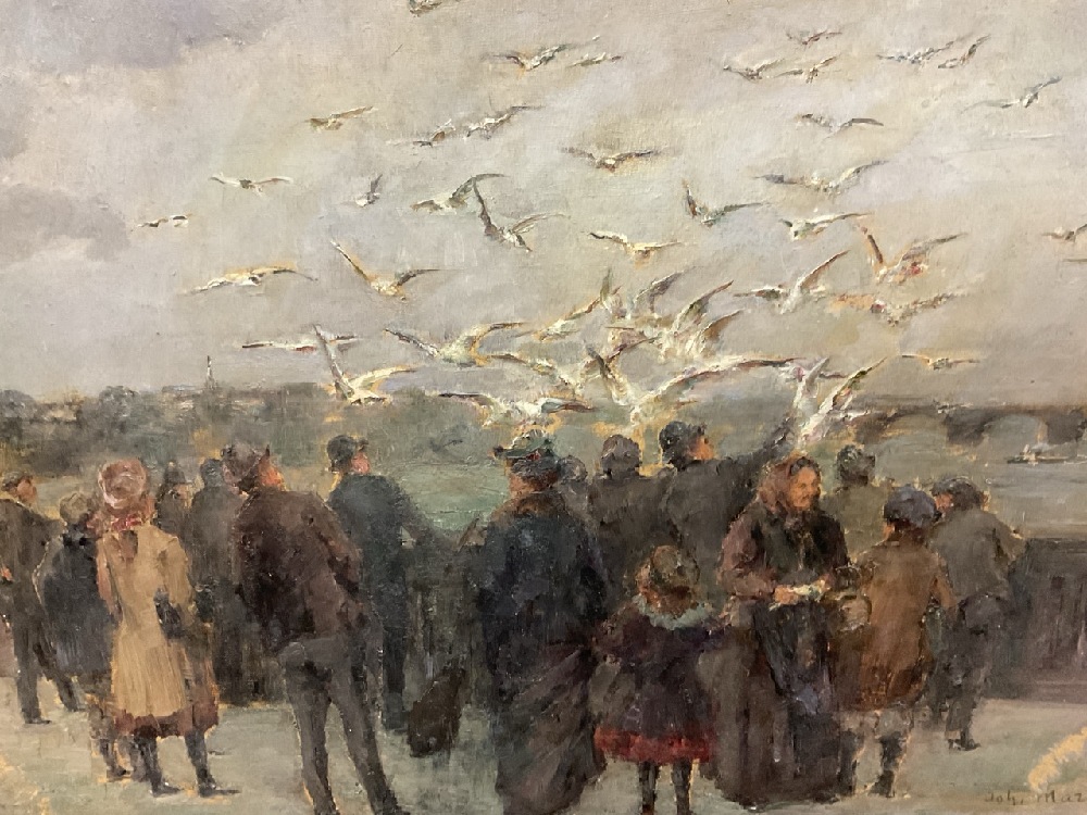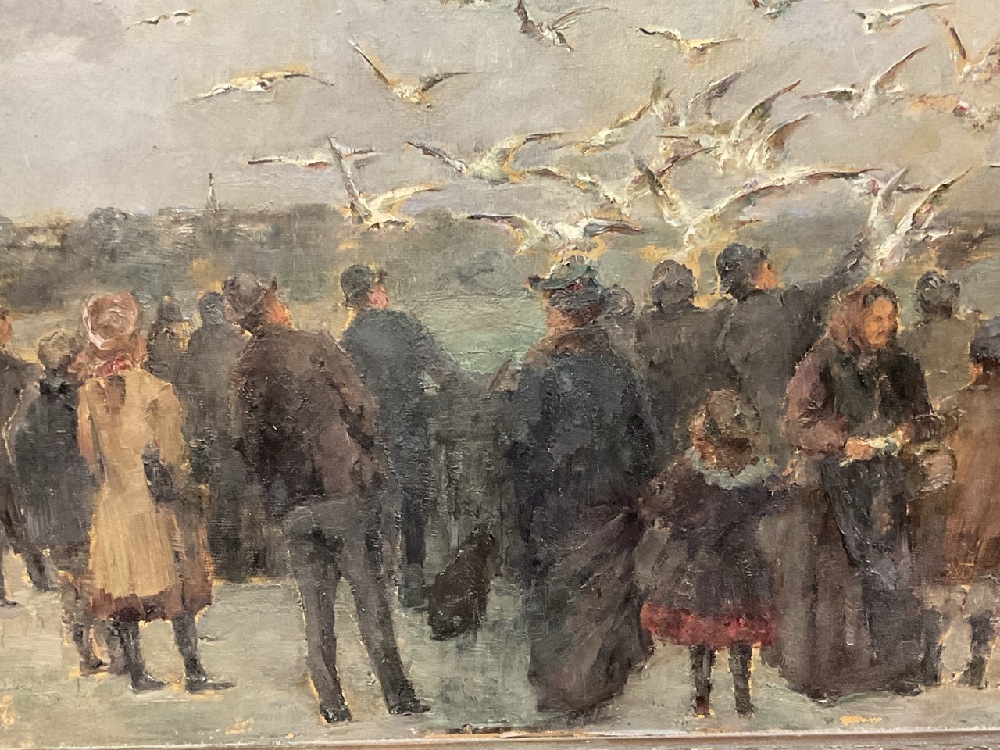 c. 1909 Oil Painting Several Figures with Birds