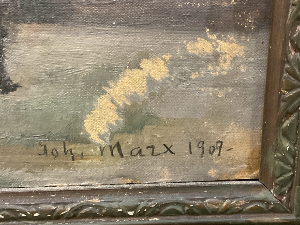 Signed illegibly lower right J. Mazx? Dated 1909.