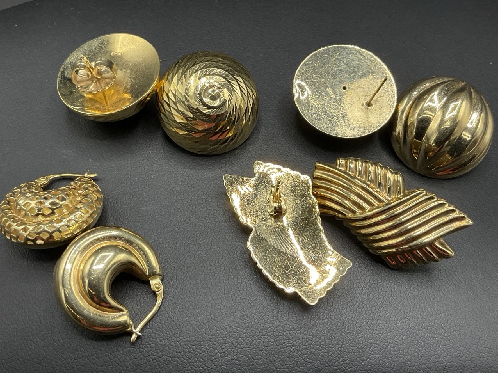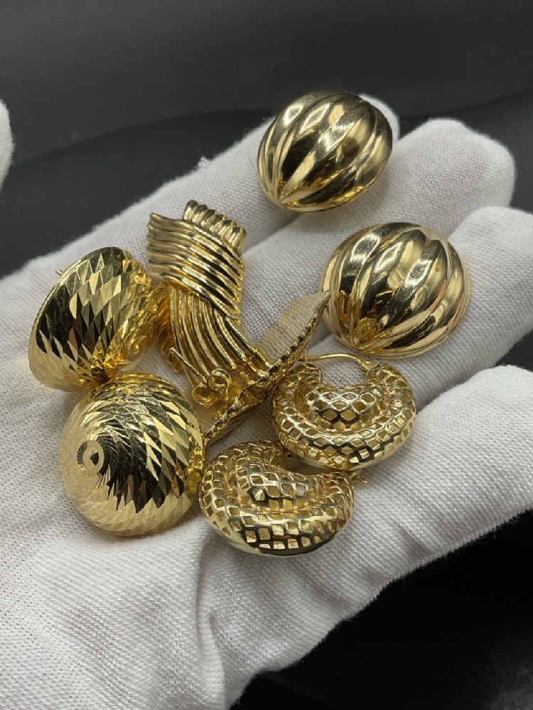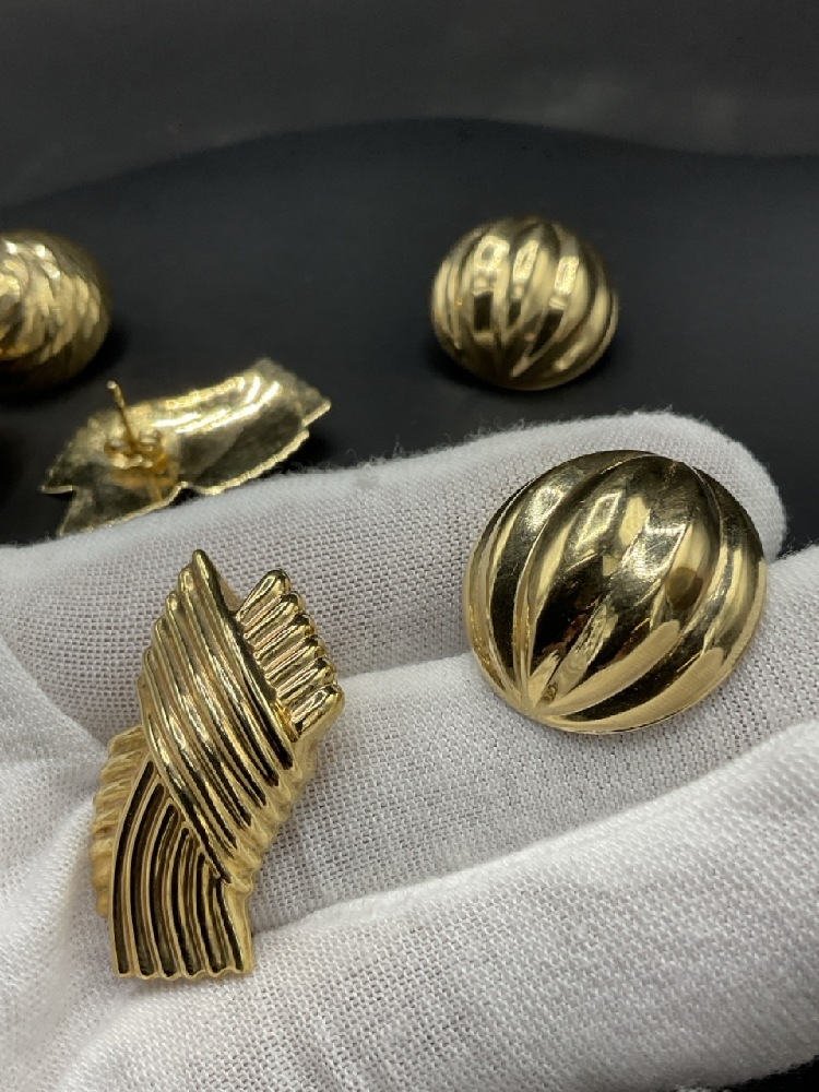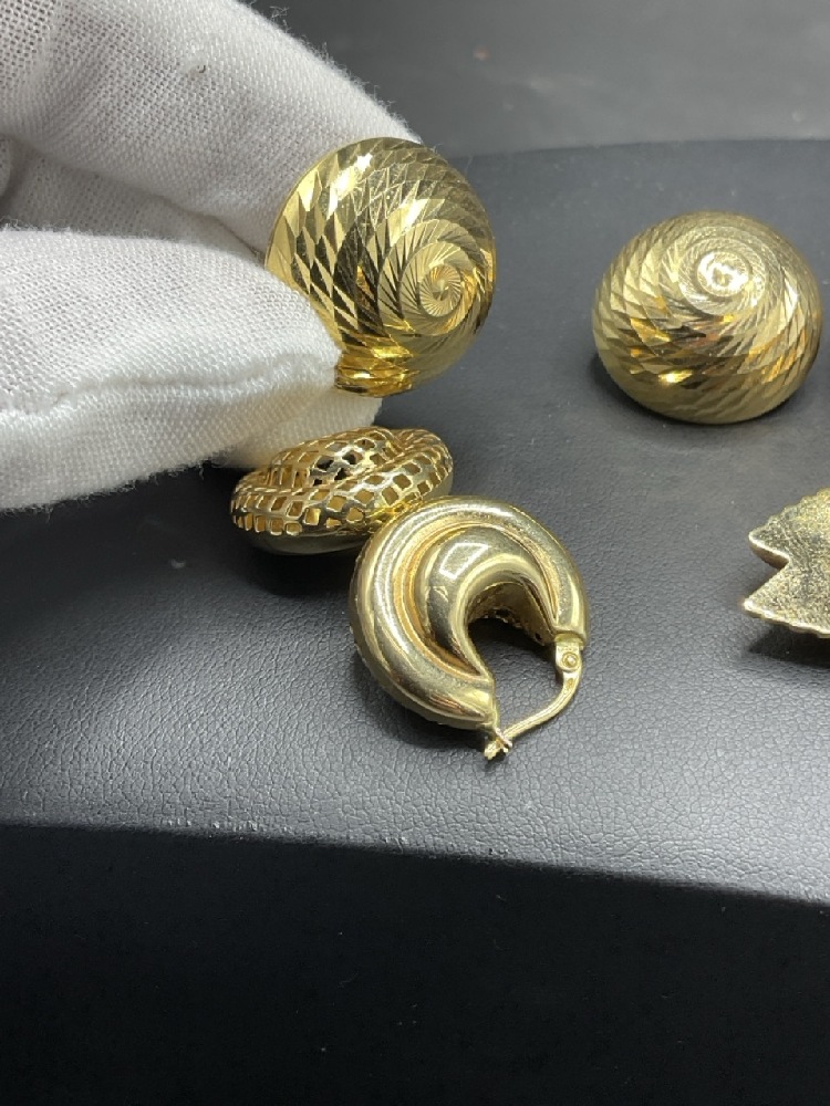 Four (4) Pairs, 14K Yellow gold lady's pierced earrings.