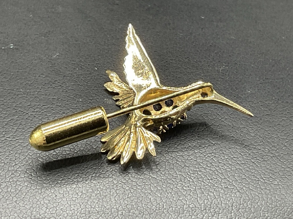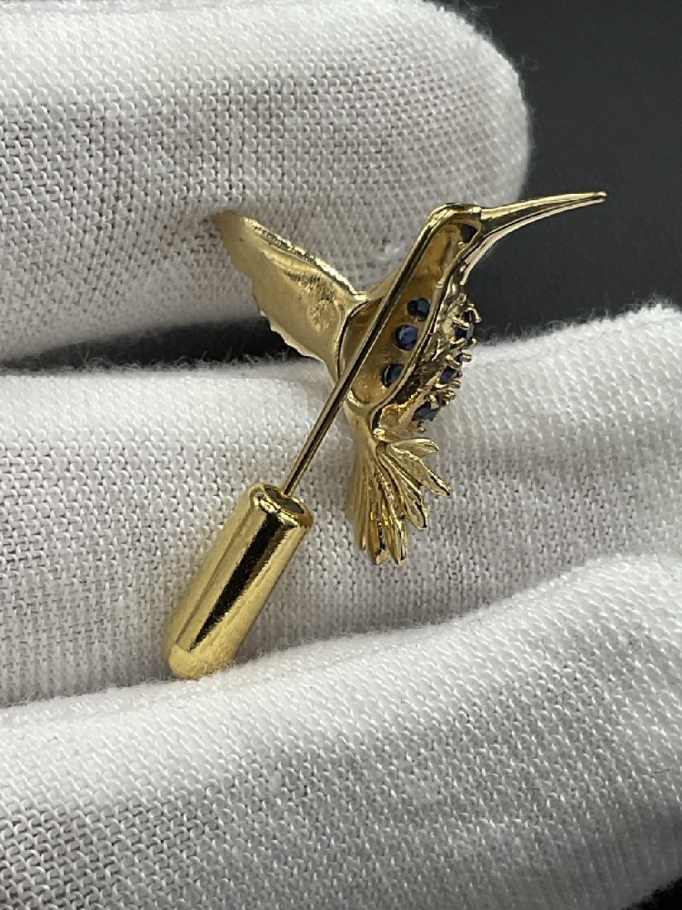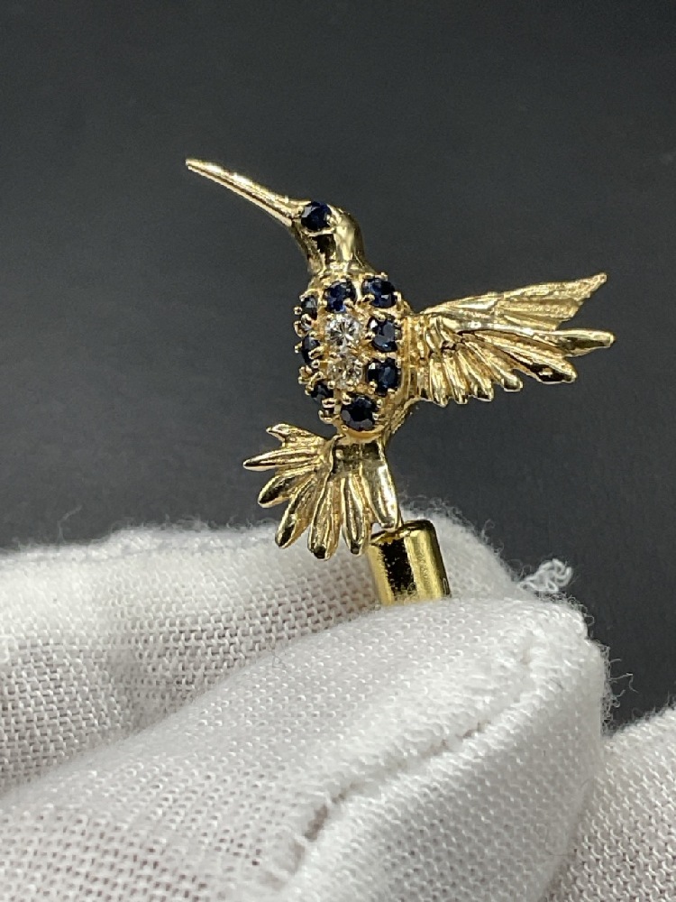 14K Hummingbird Diamond and Blue Sapphire Pin.