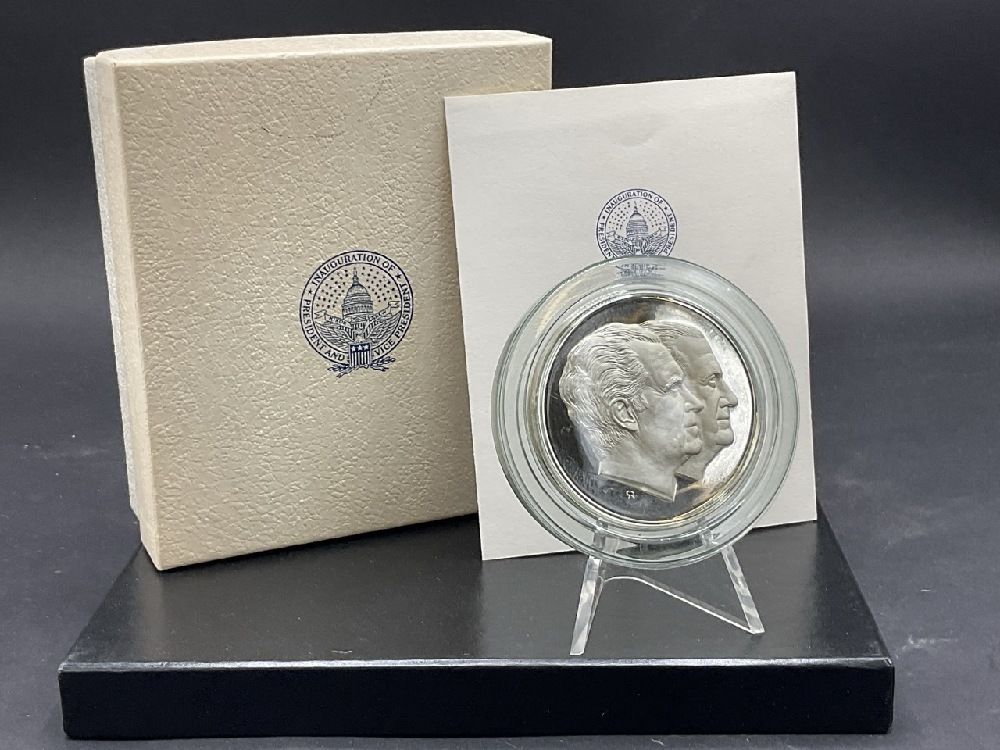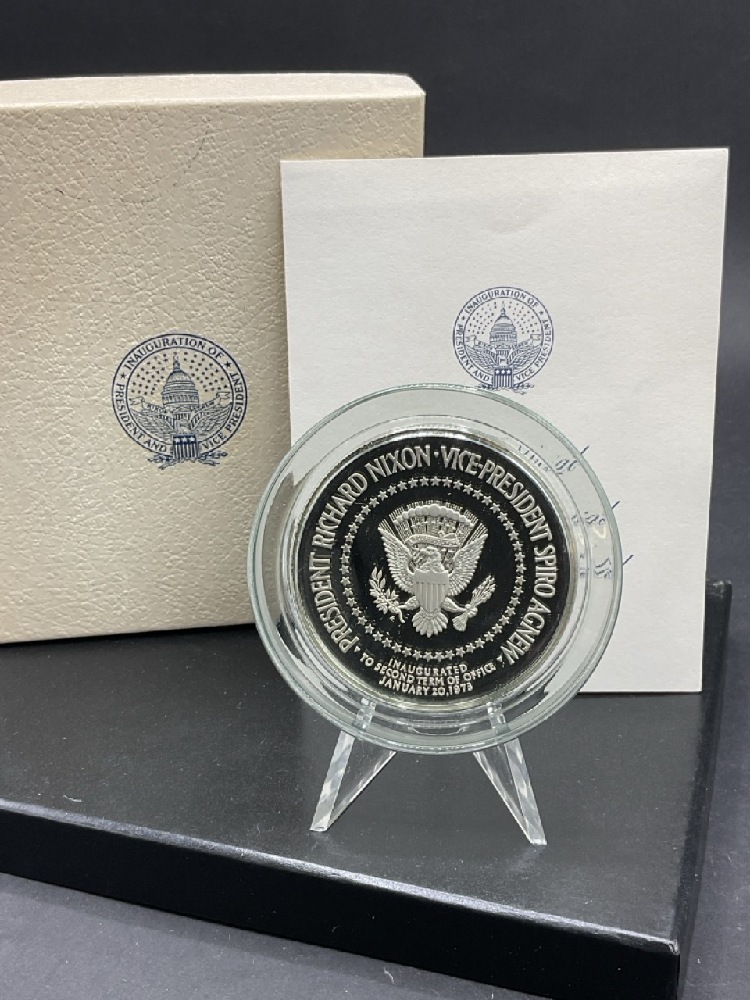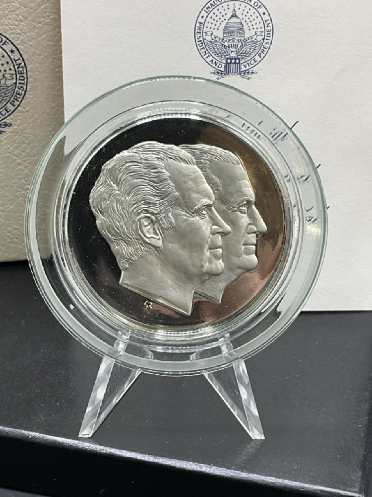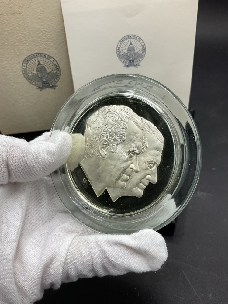 The Official 1973 Presidential Inaugural Medal Richard Nixon and Spiro Agnew. Sterling Silver .925 Pure. Designed by Gilroy Roberts.