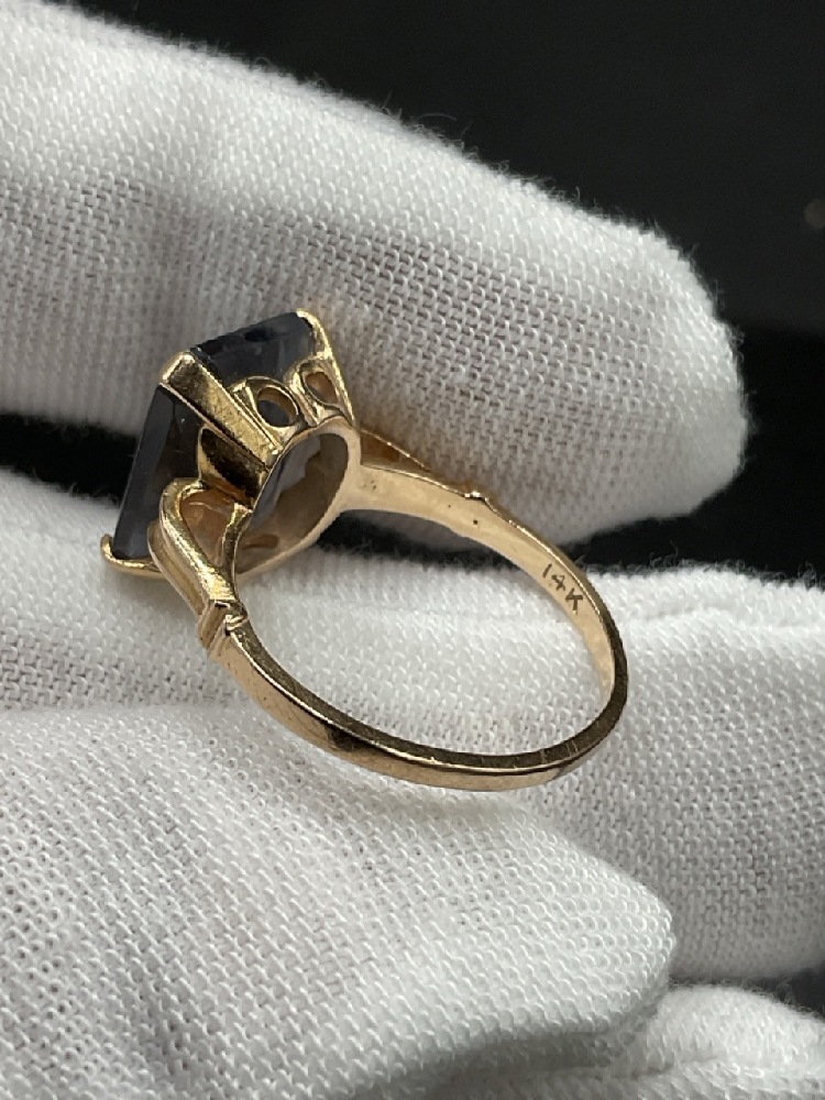 14K Yellow Gold Ring with Blue Stone.