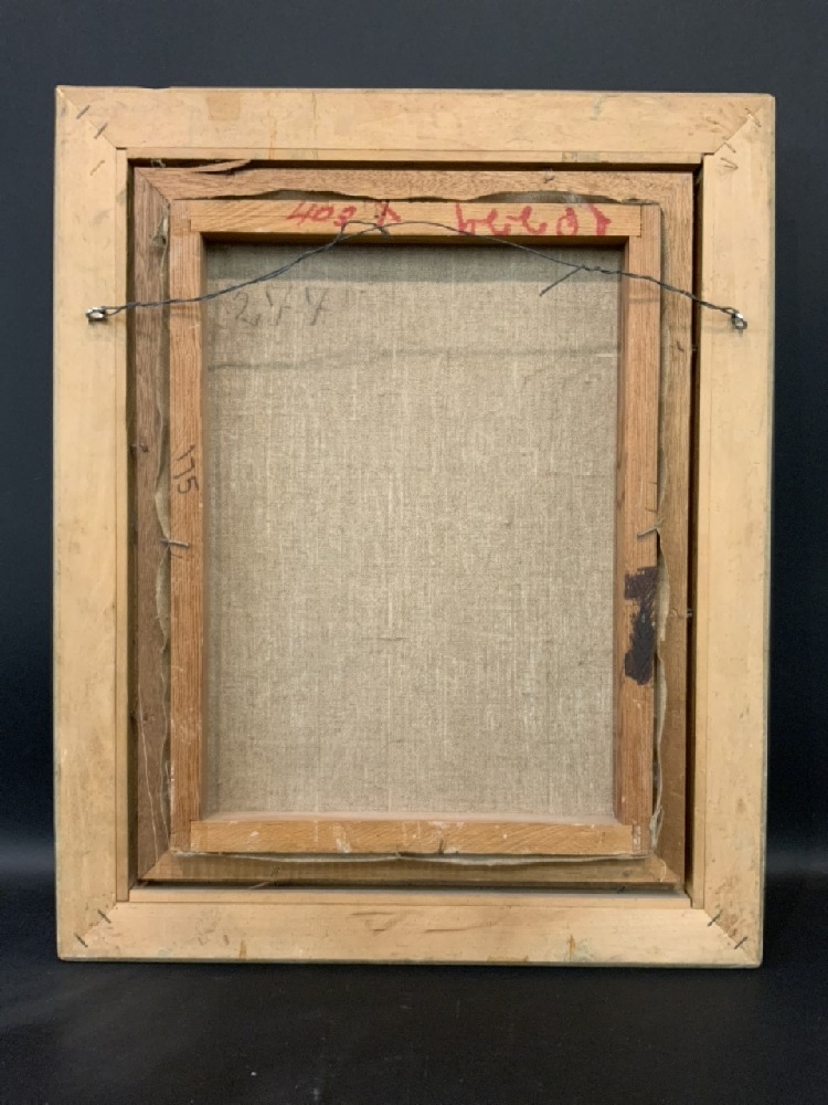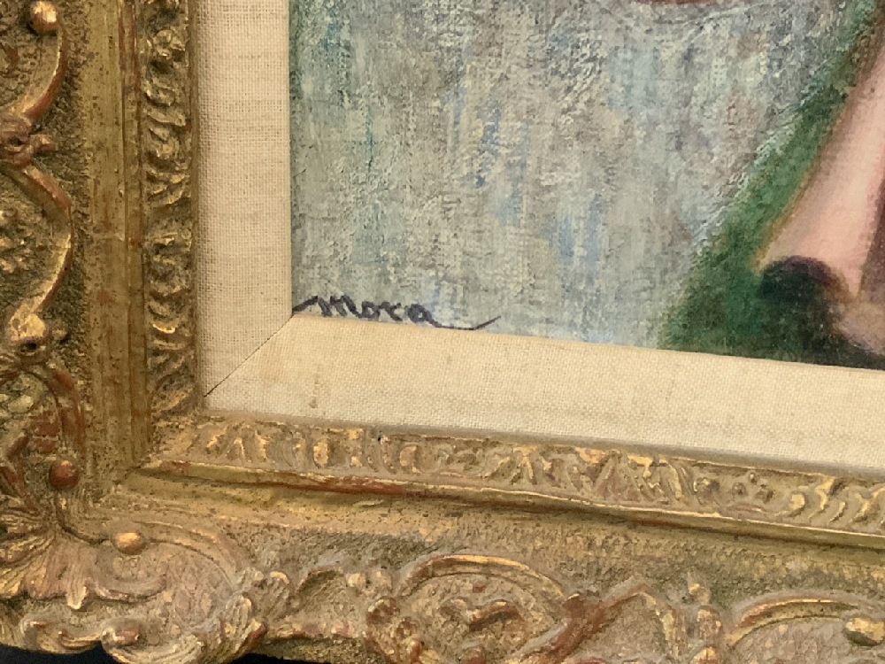 R. Mora (Spanish, b.1909) Portrait of Young Lady with Bonnet. Oil on canvas.Dimensions: 15 1/2” x 11 1/2” Framed: 22 1/2” x 18”