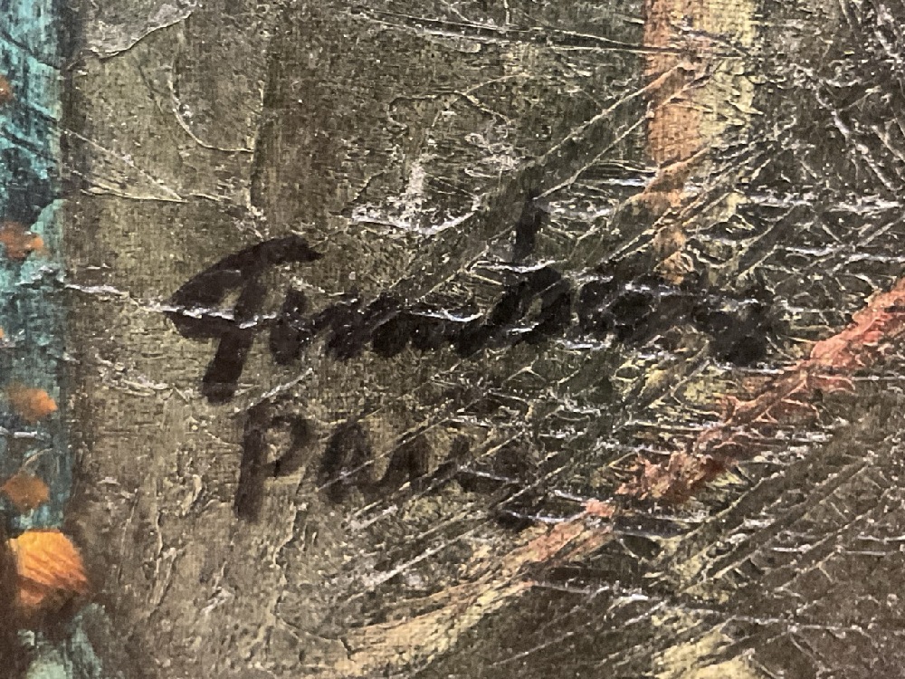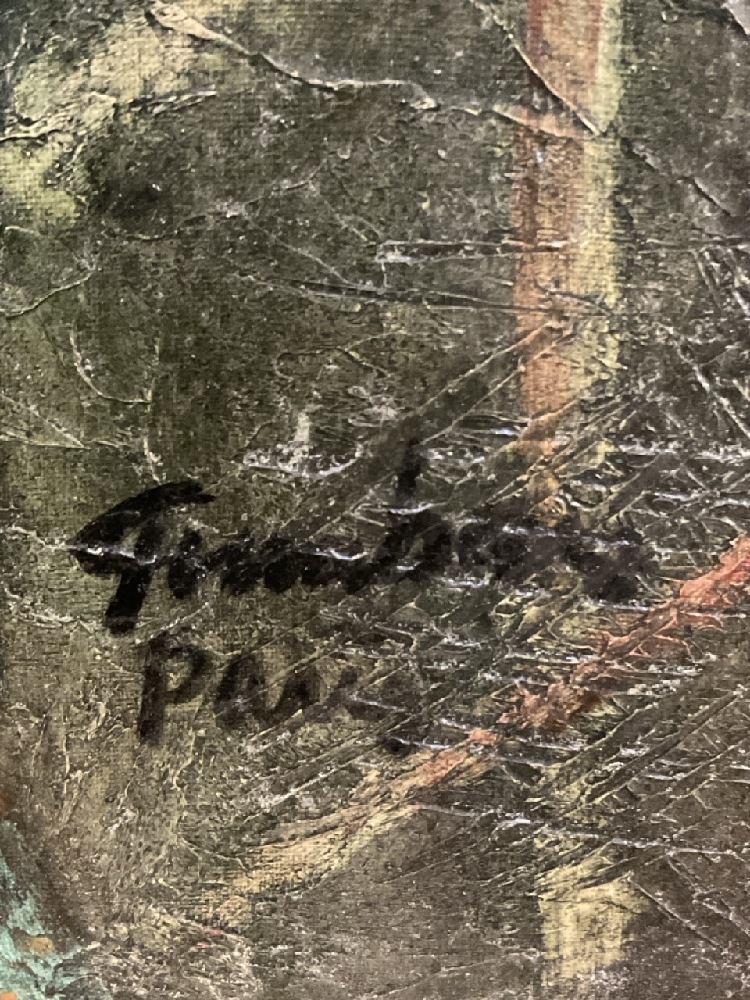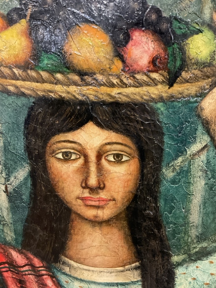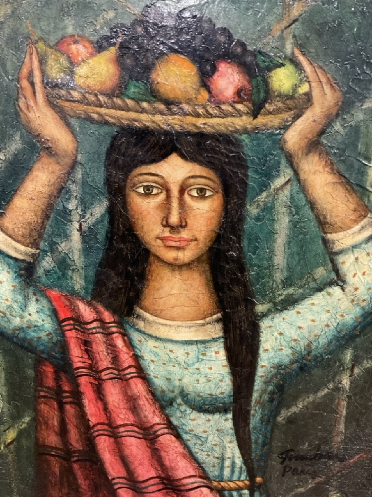 Jose Vidal Gumbau (1907-1989). Portrait of Woman Carrying Basket of Fruit. Oil on canvas. Signed lower left "Gumbau, Paris" Dimensions: 24” x 20” and 34” x 30” Framed.