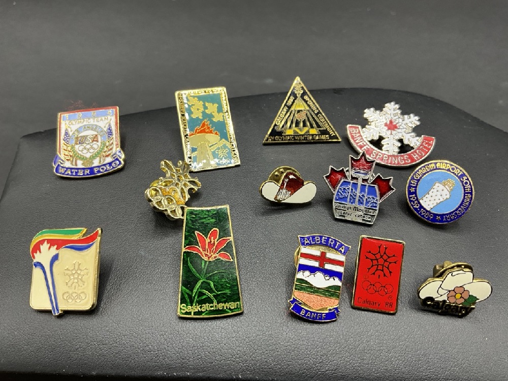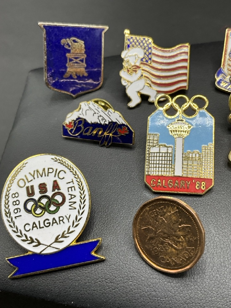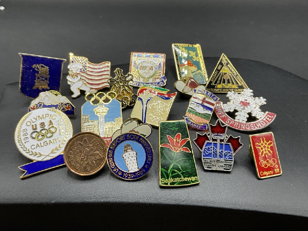 Collection of Pins Including Olympics and Canadian