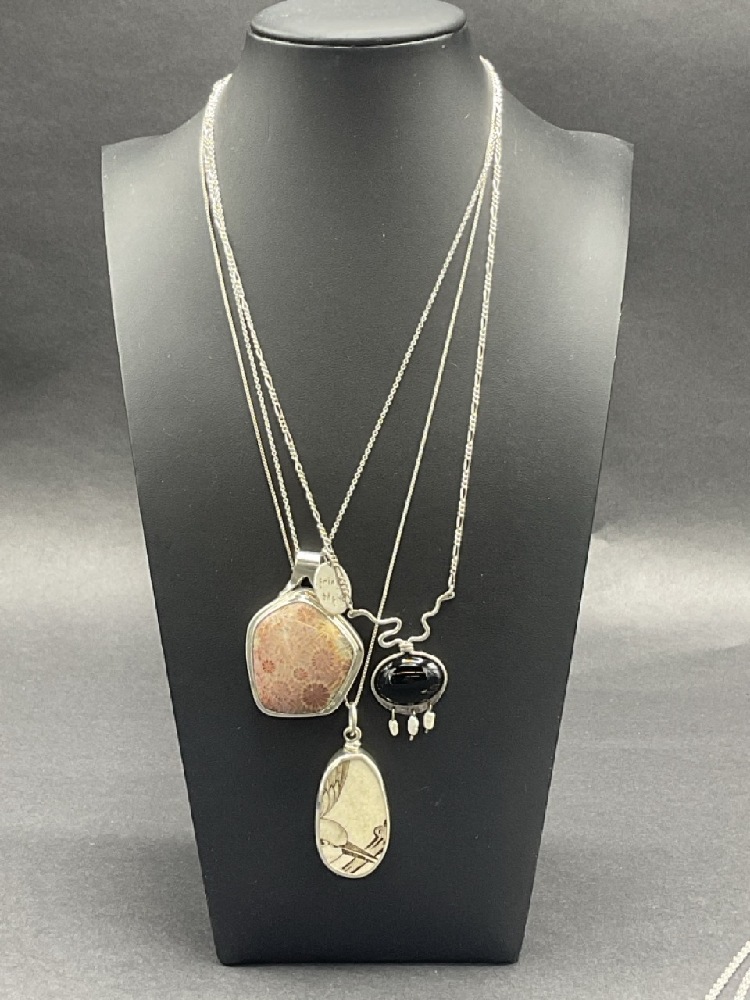Seven (7) Sterling Silver Compiled Necklaces.
