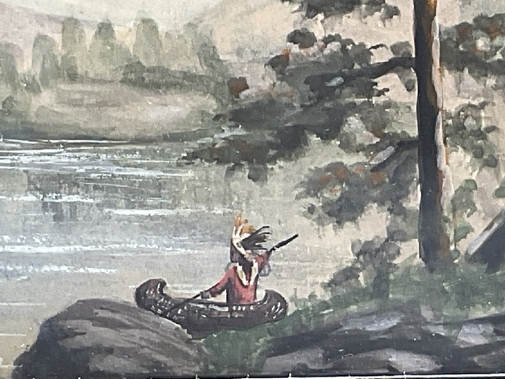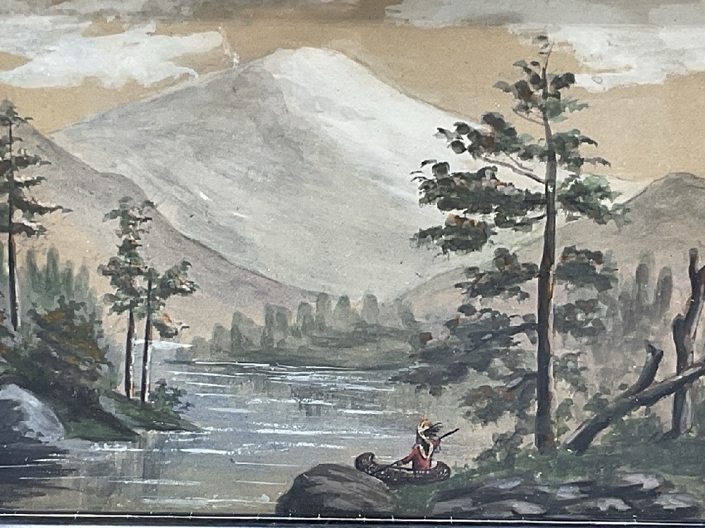 American Indian Along Side River Watercolor on Paper.