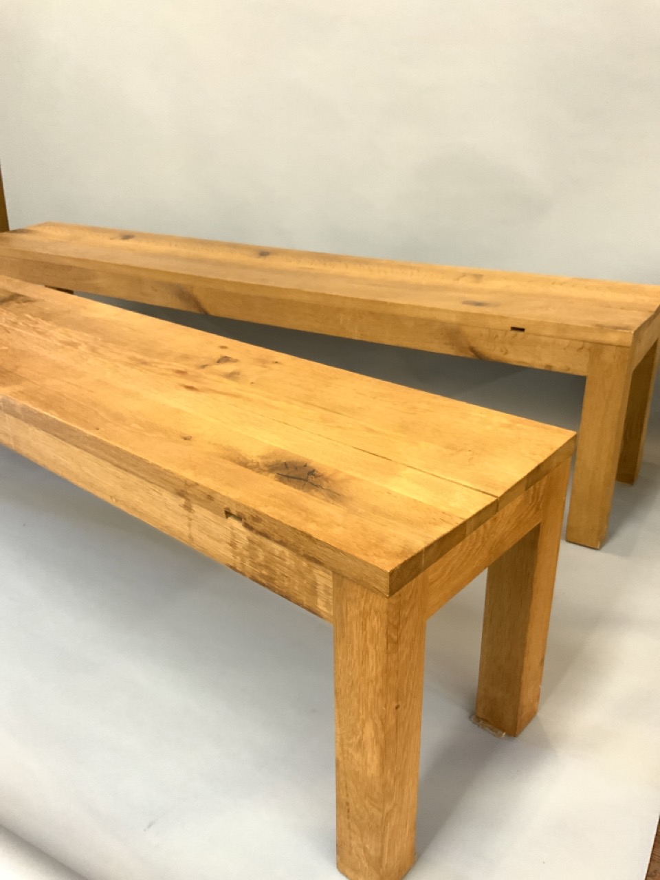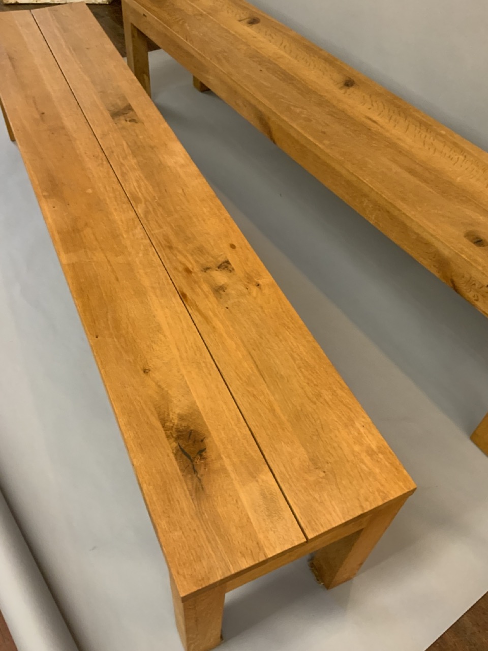Florian Asche b.1963, Miwa E15 solid hardwood benches. A pair. Signed. Made in Germany.