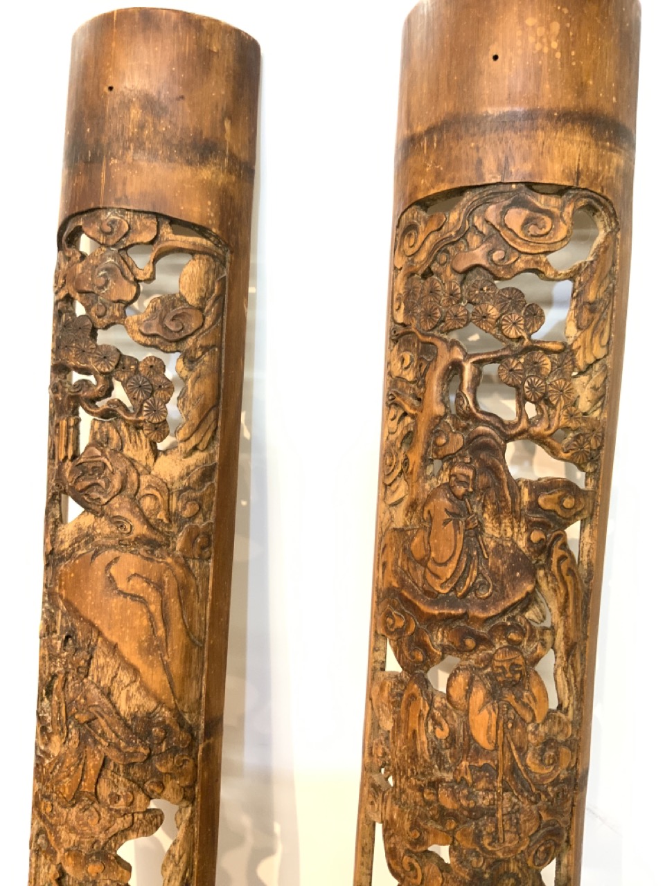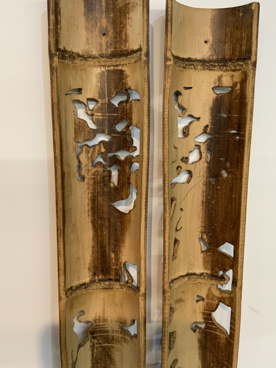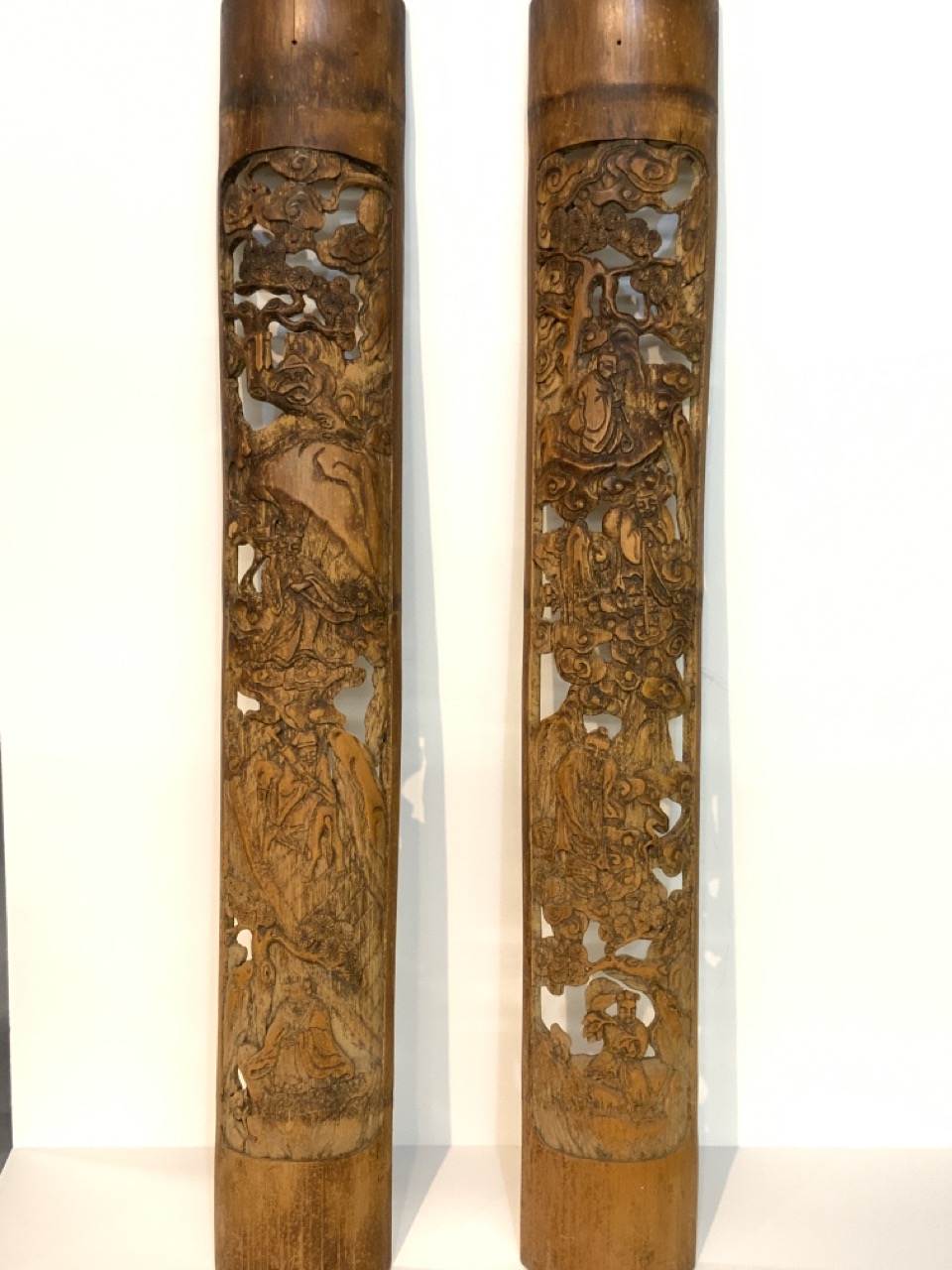 Two Chinese hand carved Bamboo wood panels.