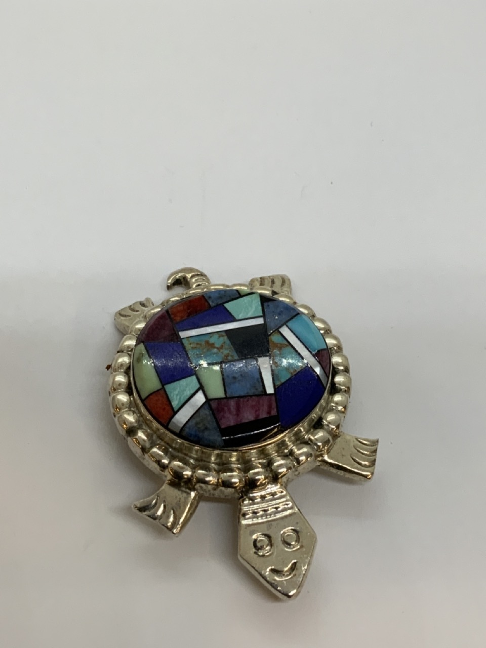 Alvin Yellowhorse Sterling Silver Turtle Pin with Lapis, Opal, Turquoise stones.