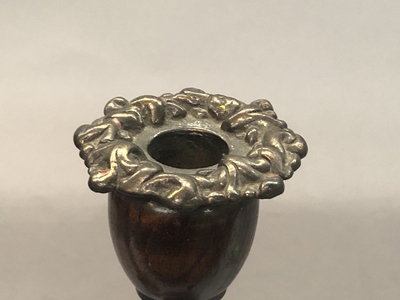Victorian turned wood candlesticks with silver plated tops. European, 19th century.
