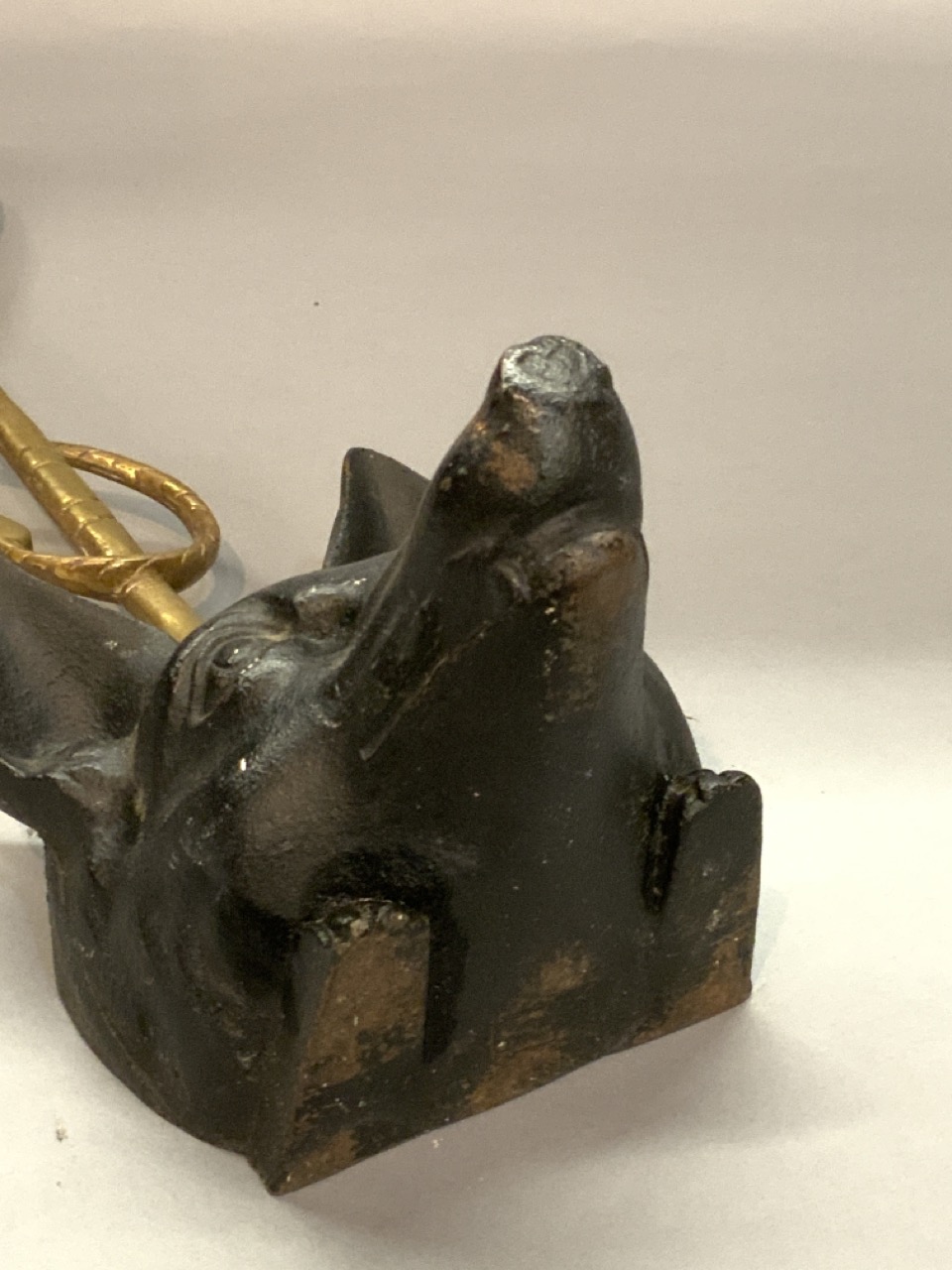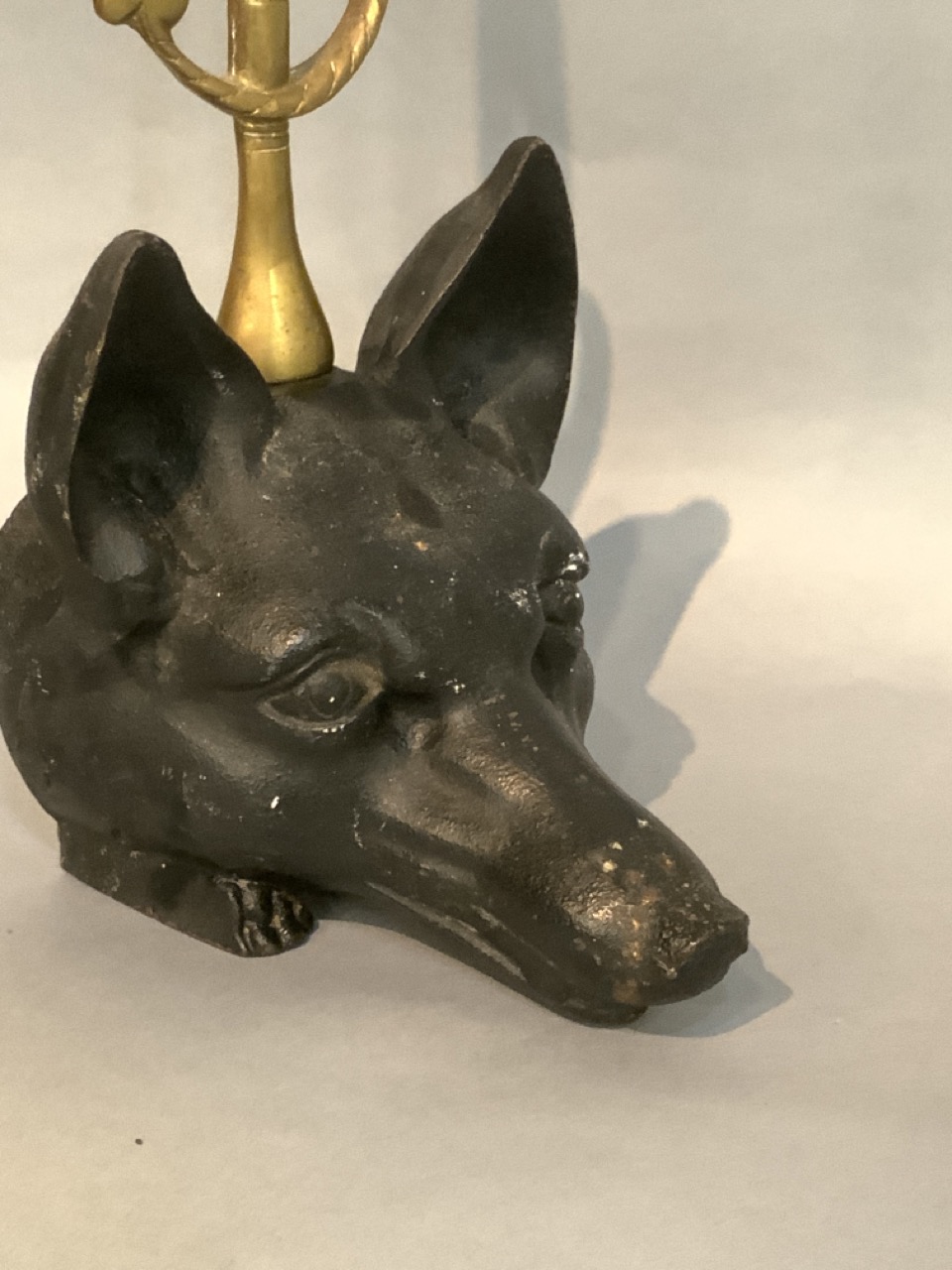 Vintage Cast Iron Doorstop of fox with brass handles.