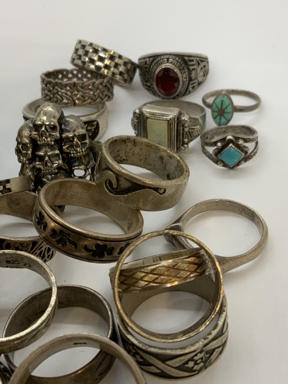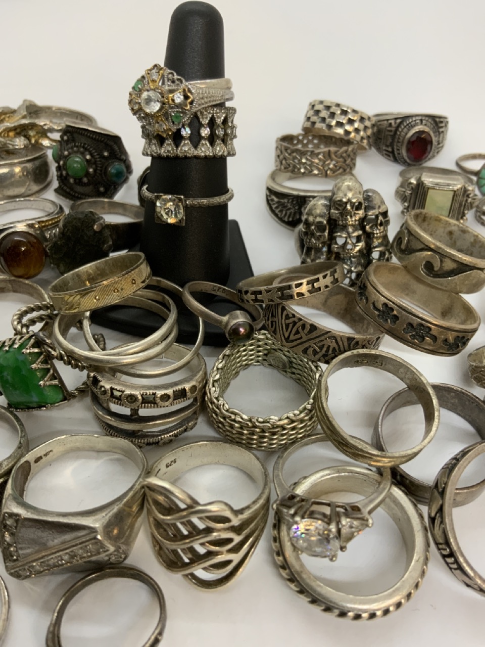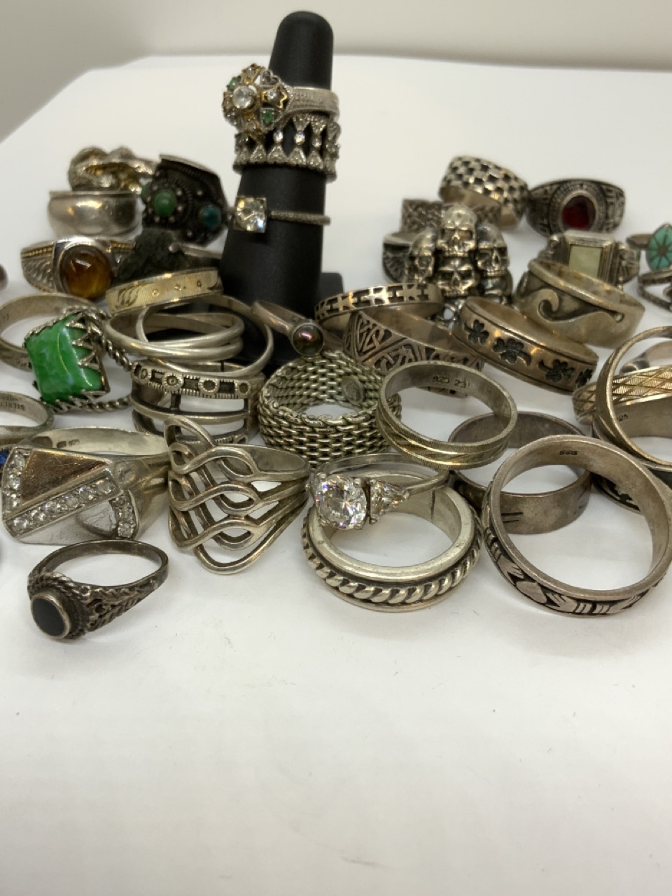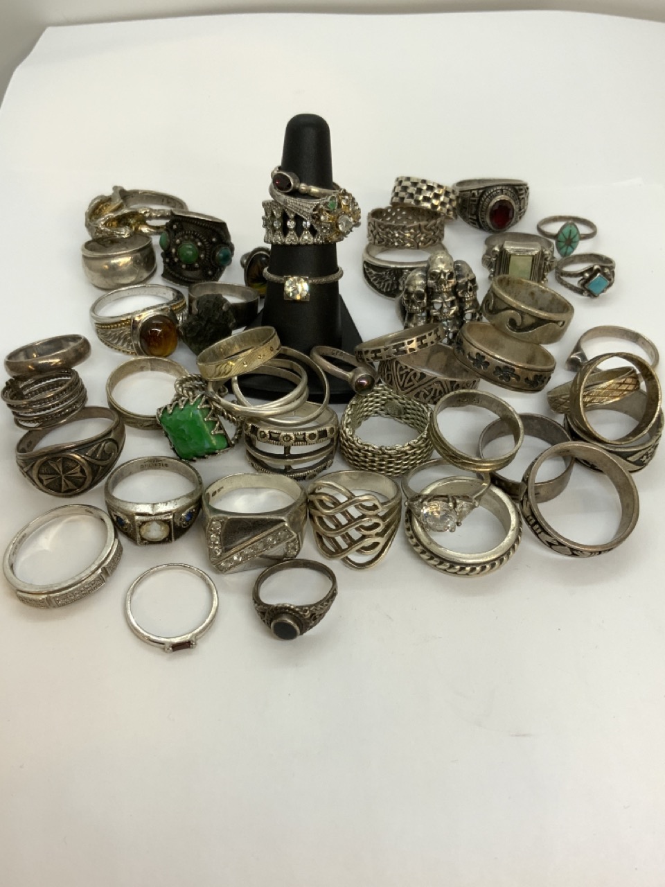 A large grouping of approx. forty-seven (47) sterling silver rings. Men' and Women's.