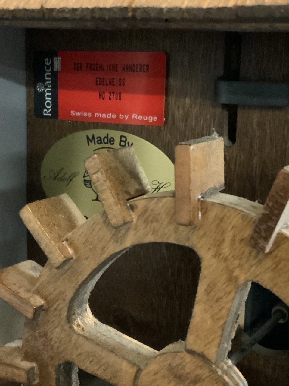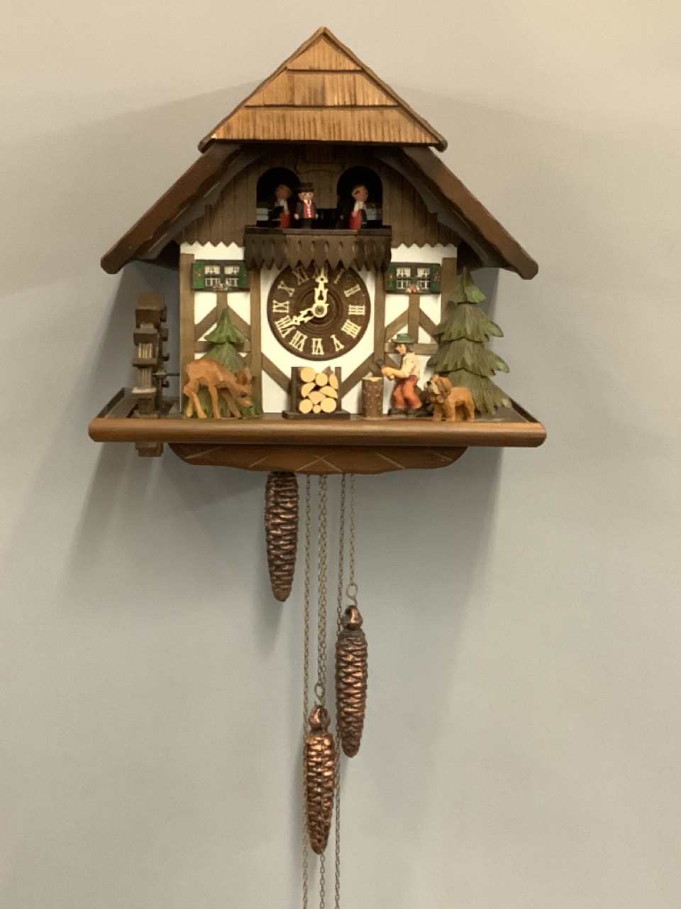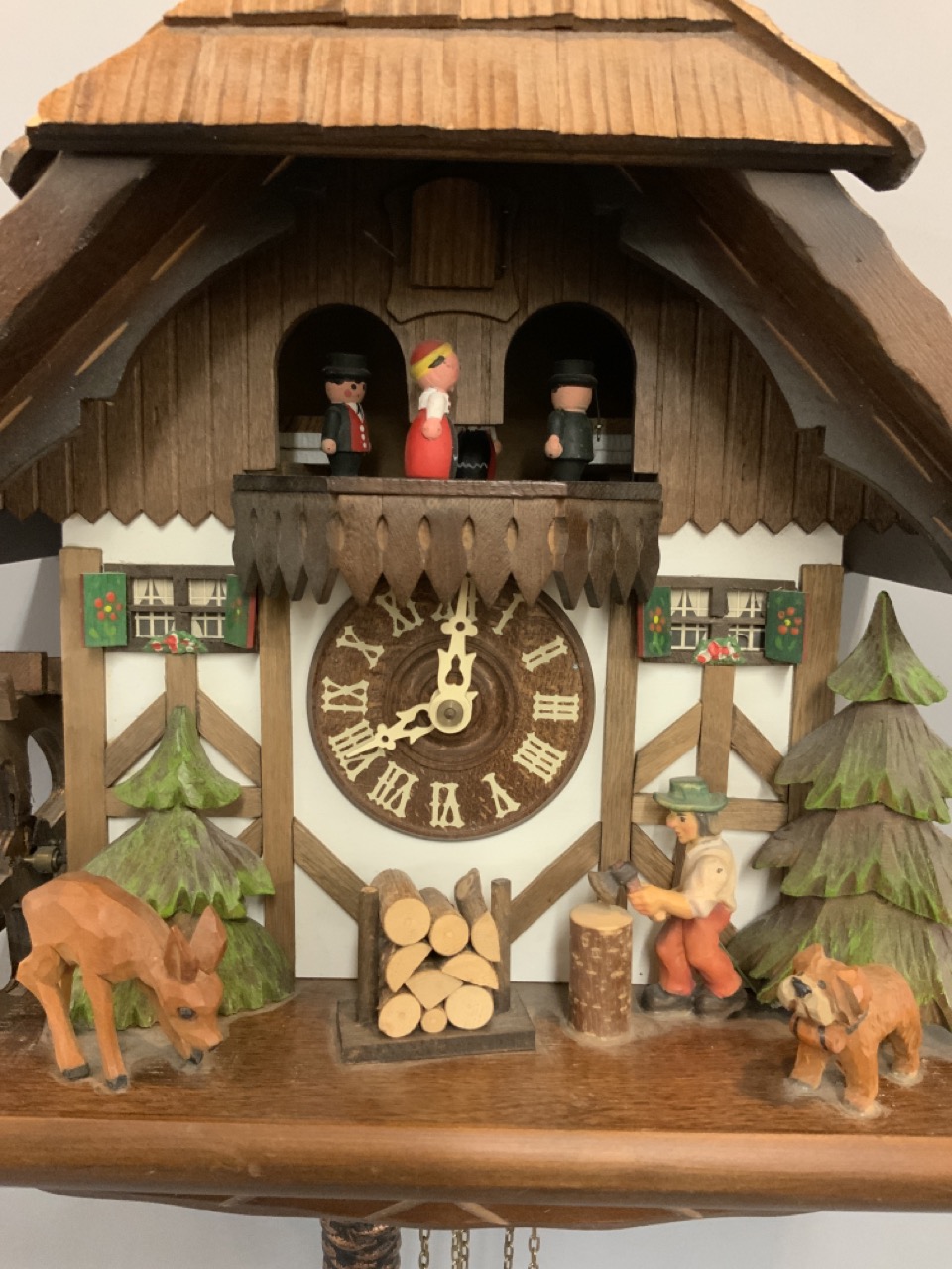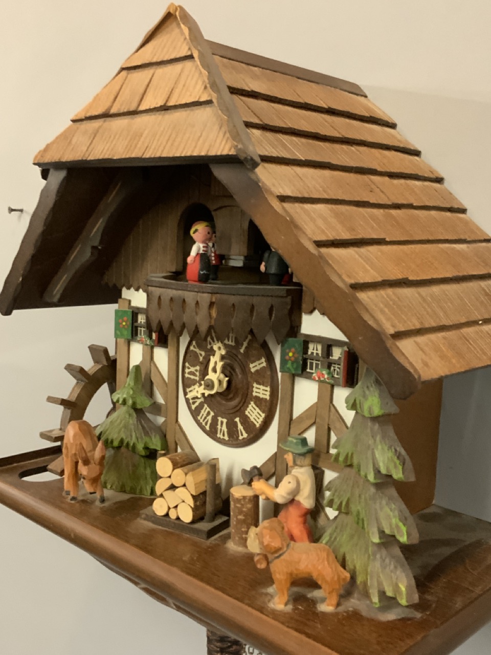 Missing pendulum and small knick to left side of roof corner. Please see photograph preview or call.