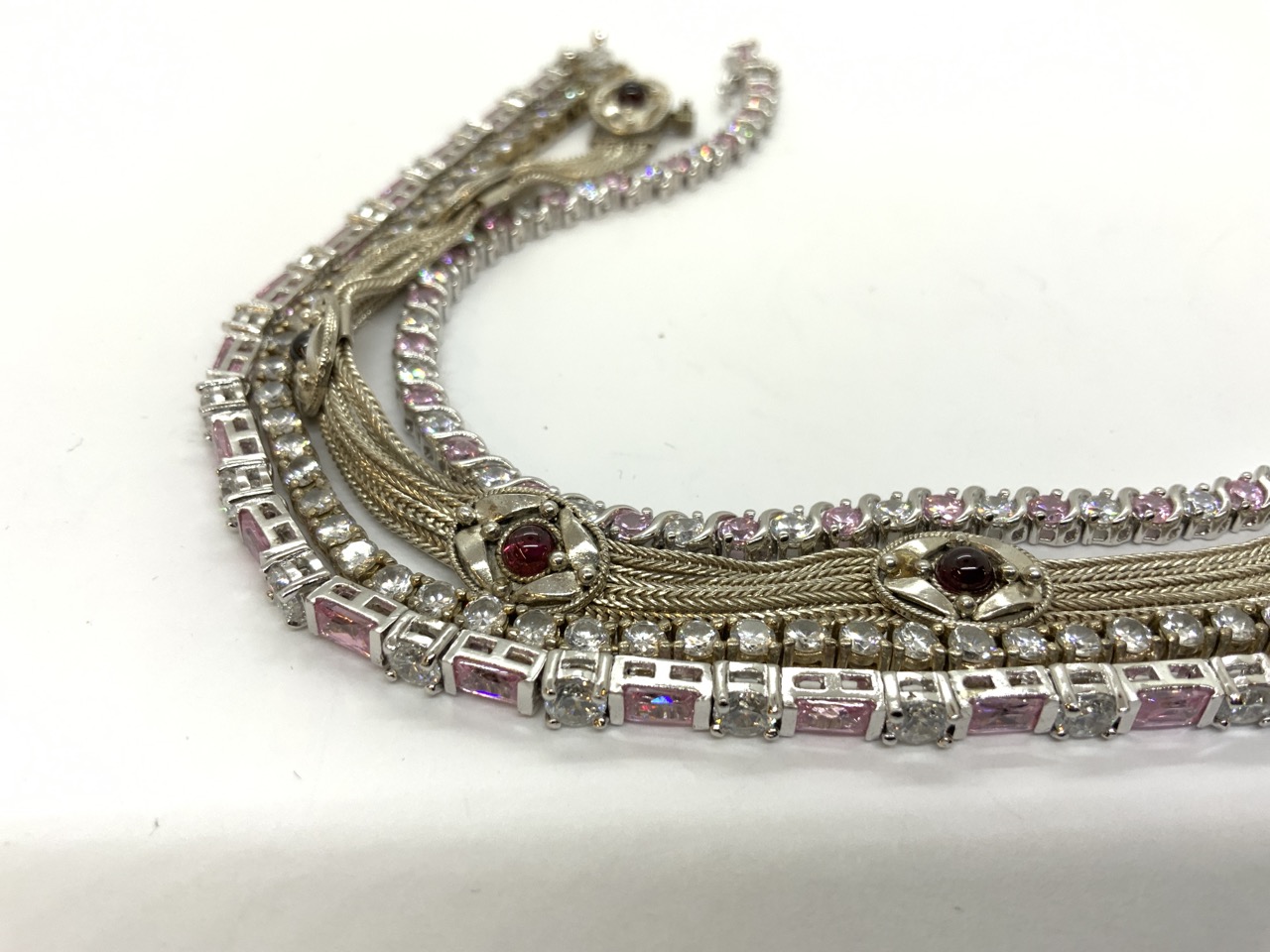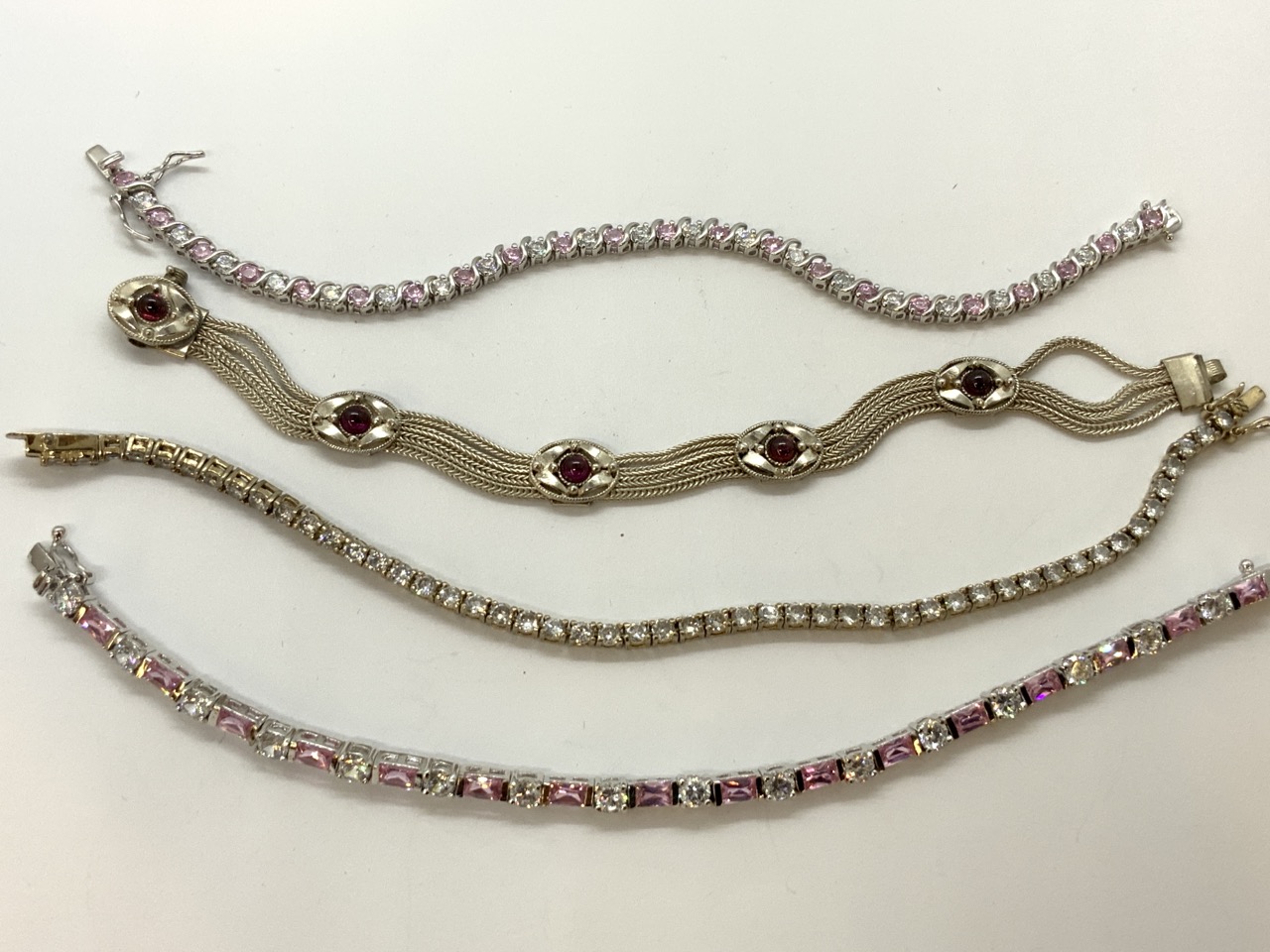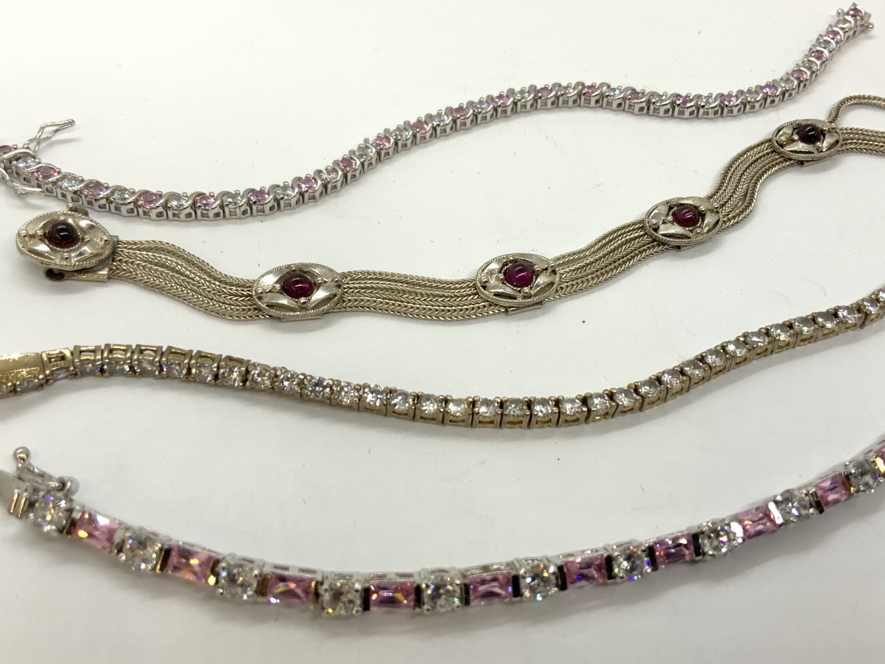 Four (4) sterling silver gemstone bracelets. 7" length.