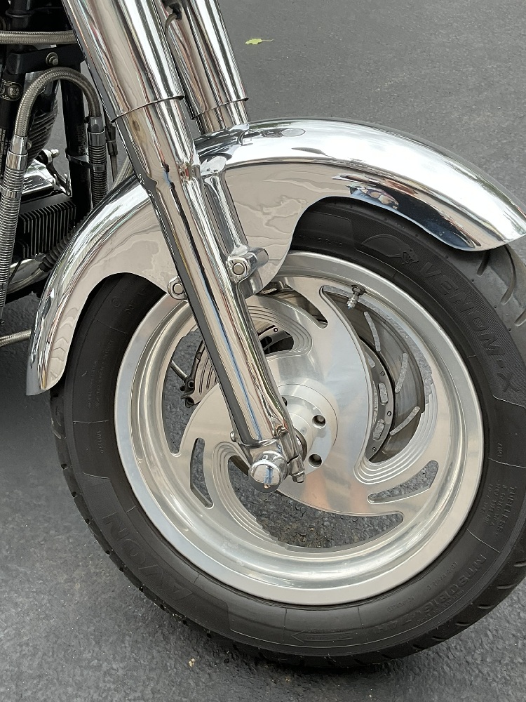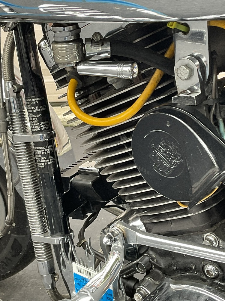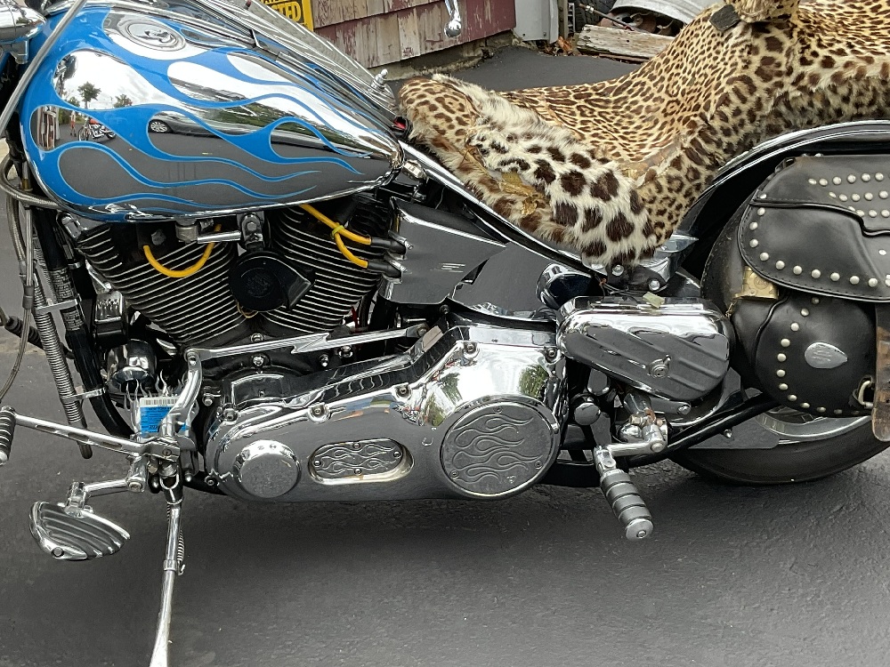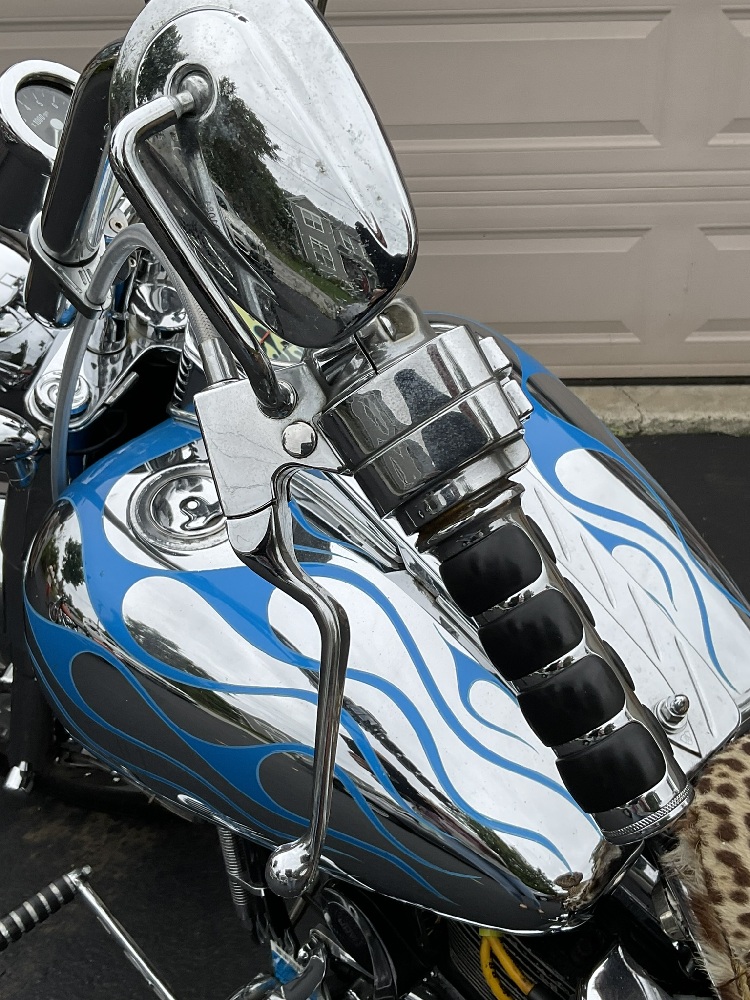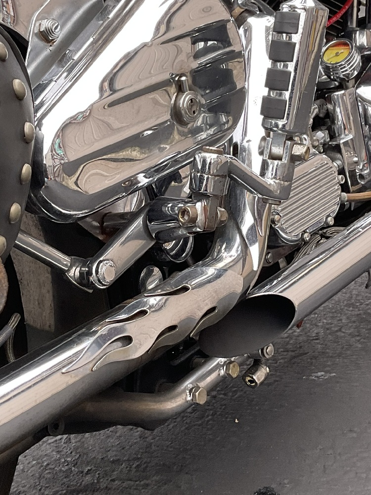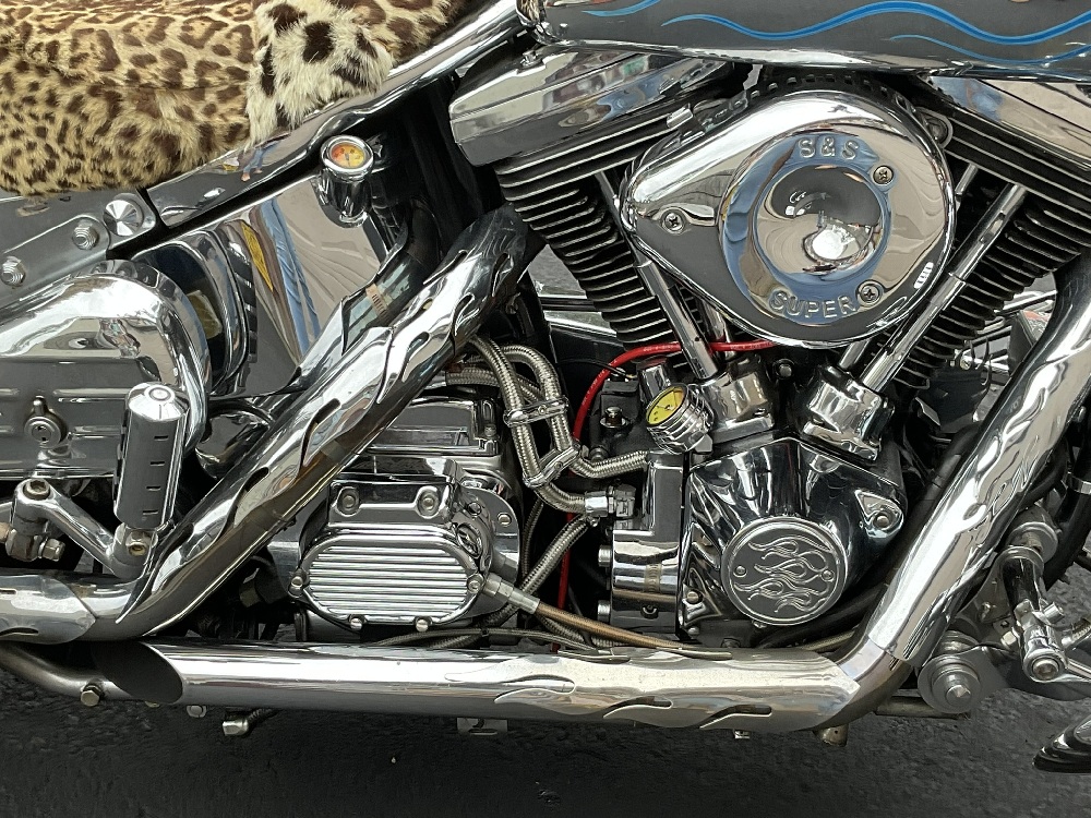 A pristine motorcycle with after market chrome additions, saddle bags, S&S Super Air Cleaner cover, Bitlwell handlebars, Flamin air horn, After stock pedals and more! Please note seat will be replaced with Corbin seat or similar. Covering was specific to owner and not for sale.
