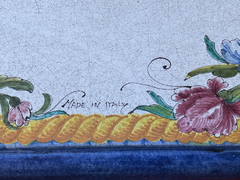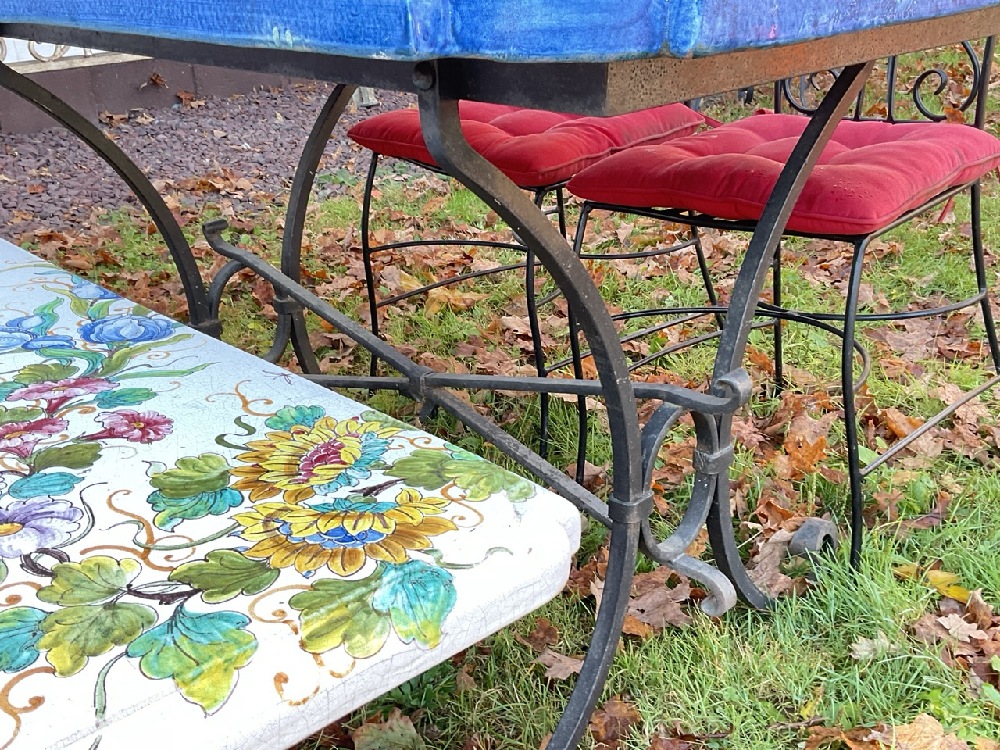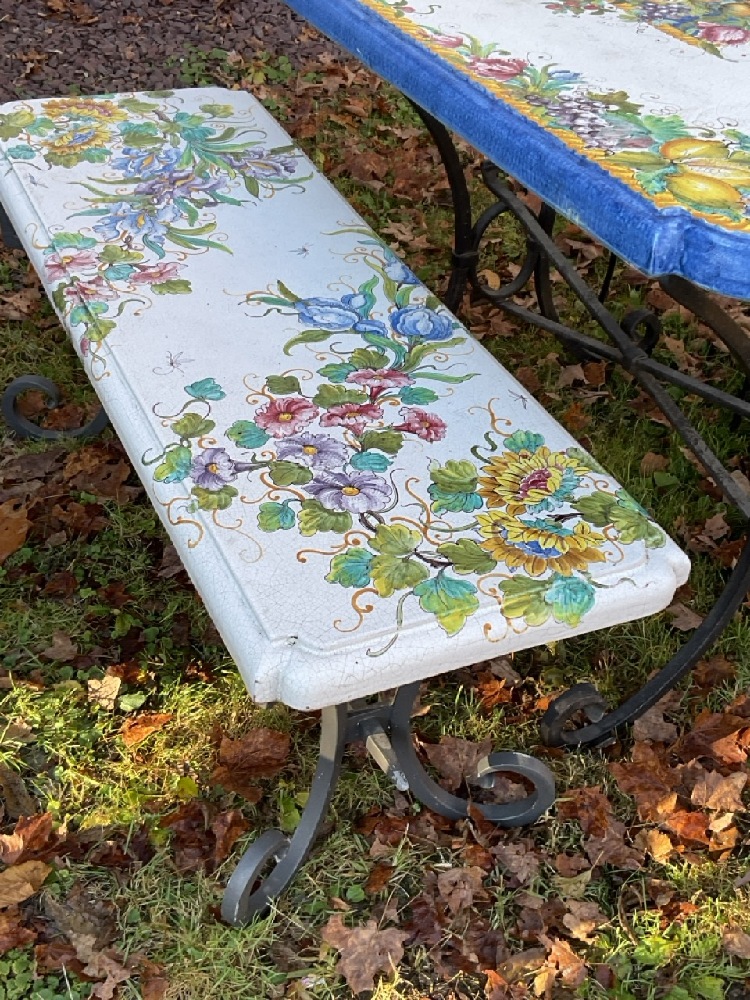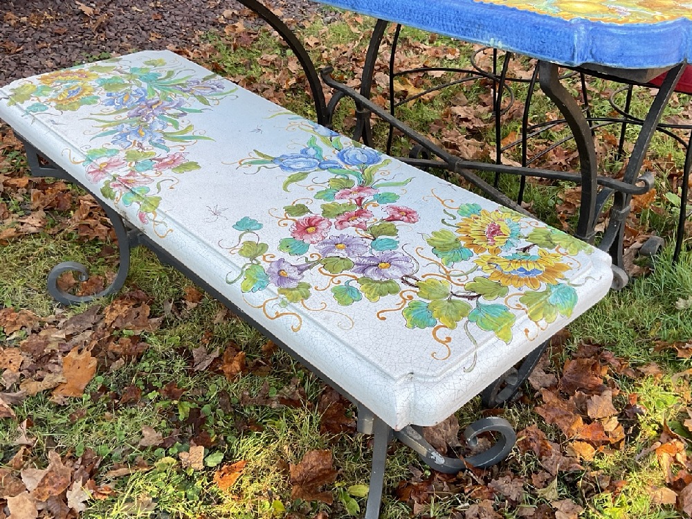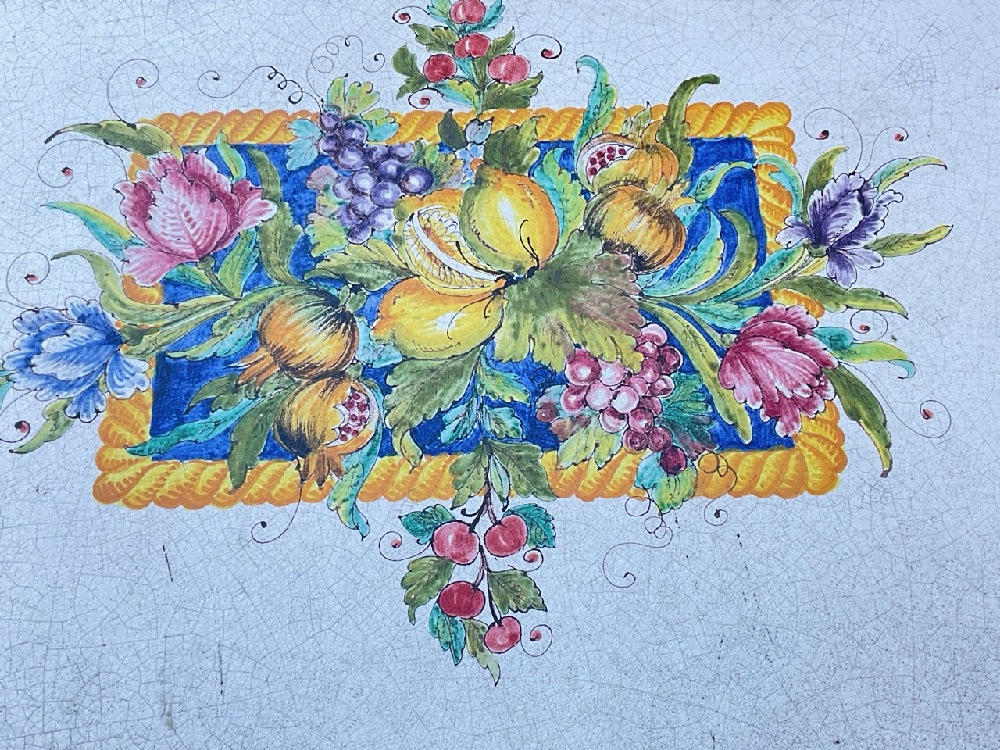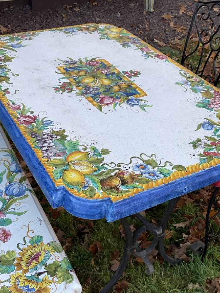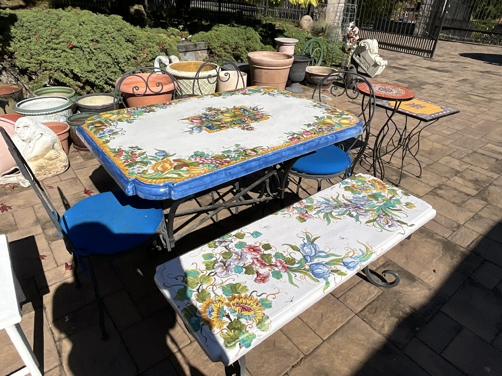 Italian Tile Top Table Hand Painted w/ Wrought Iron Base.