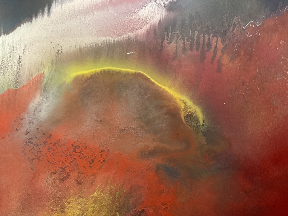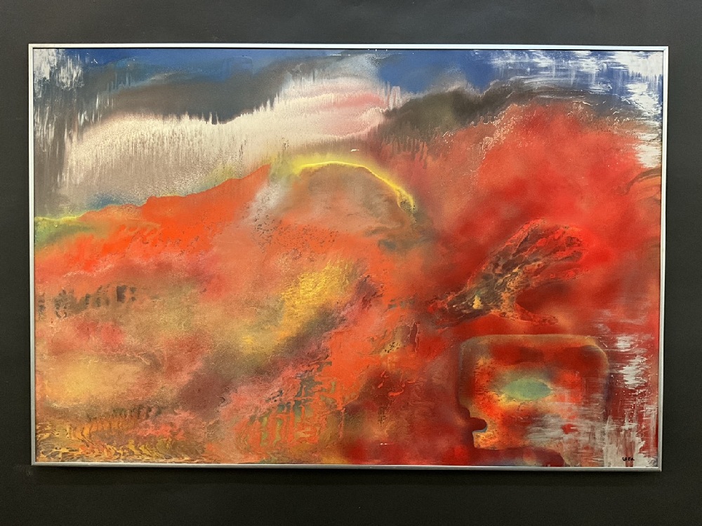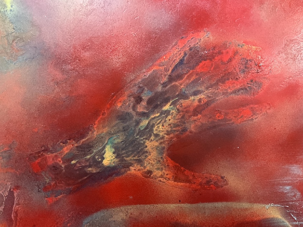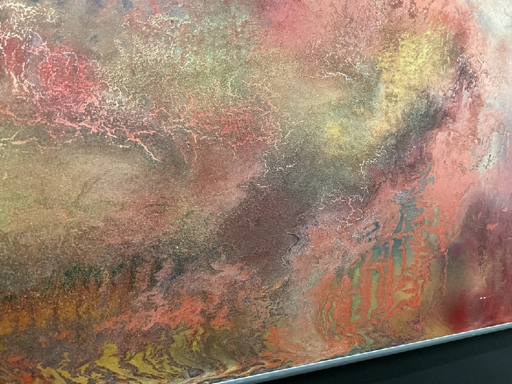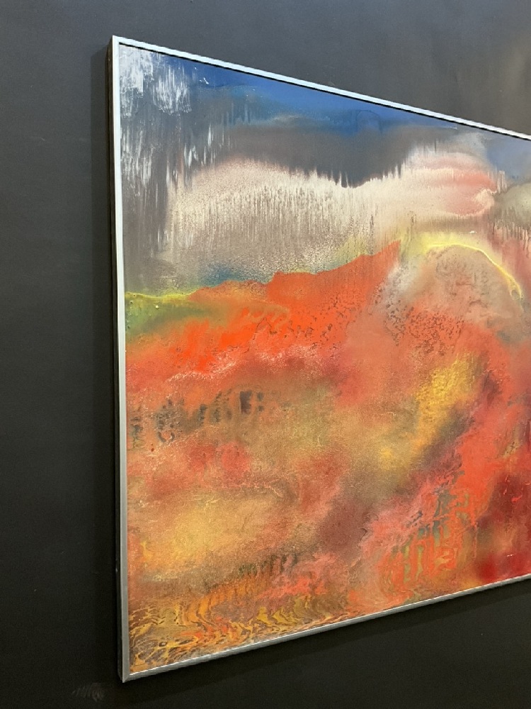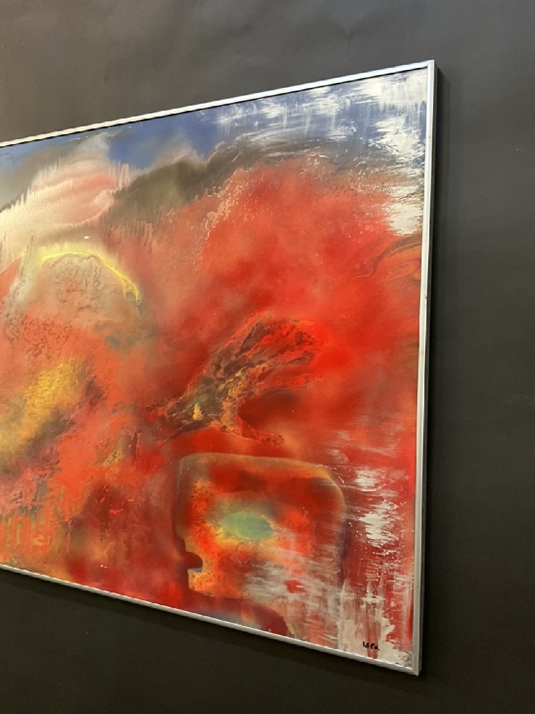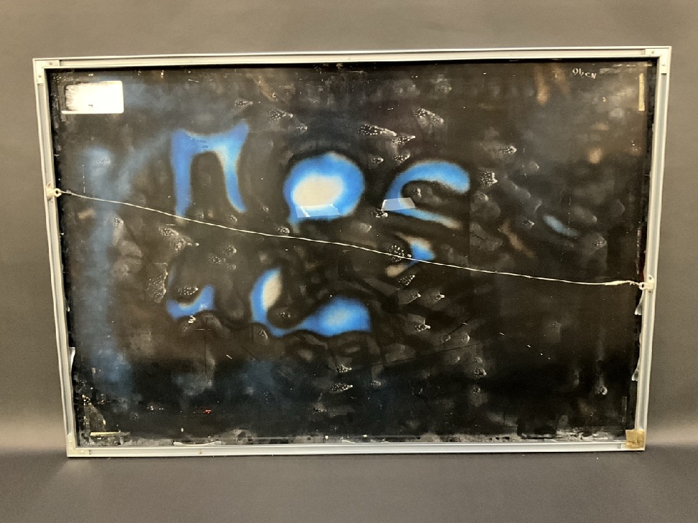 Abstract Oil on Metal Panel Painting with Alien Forms.