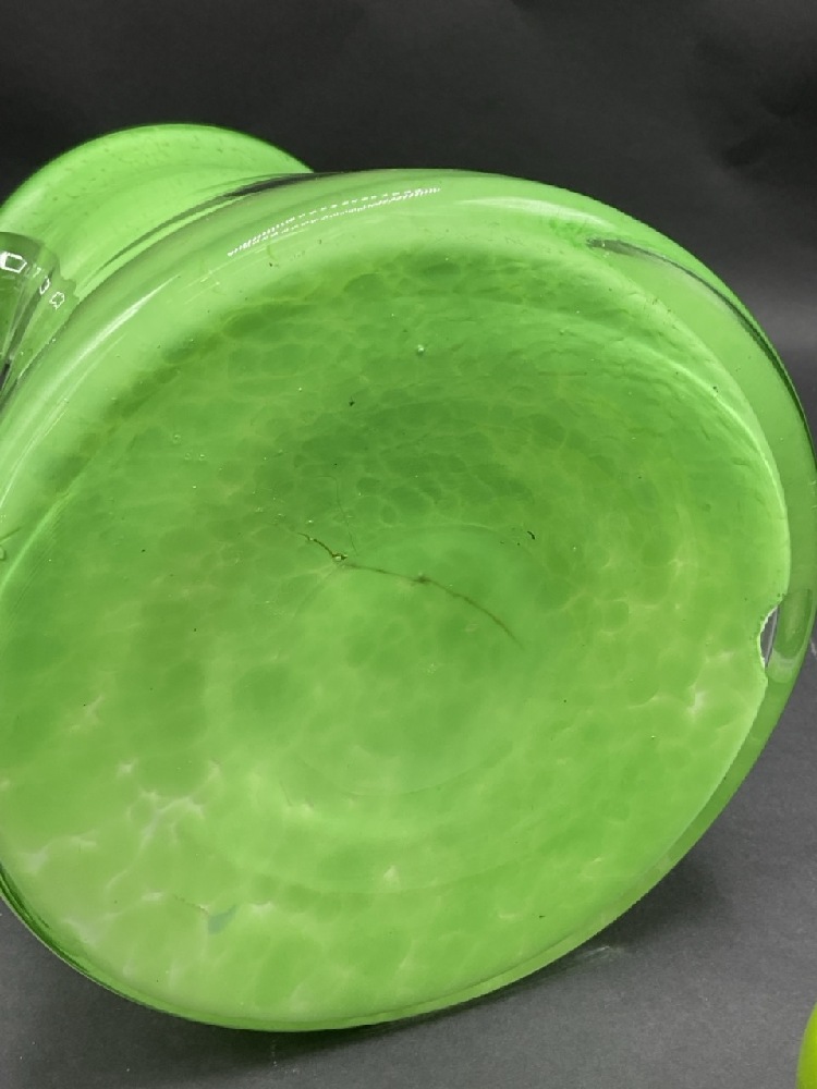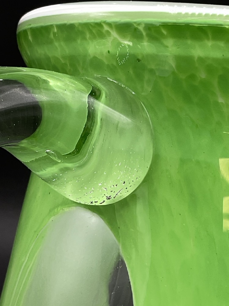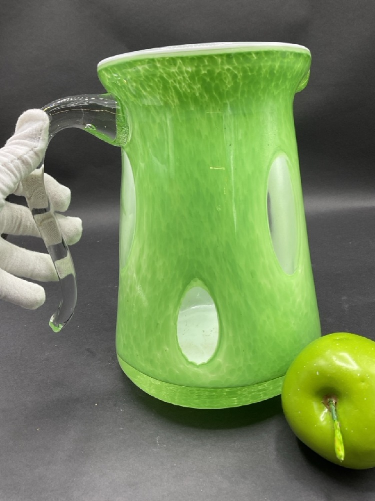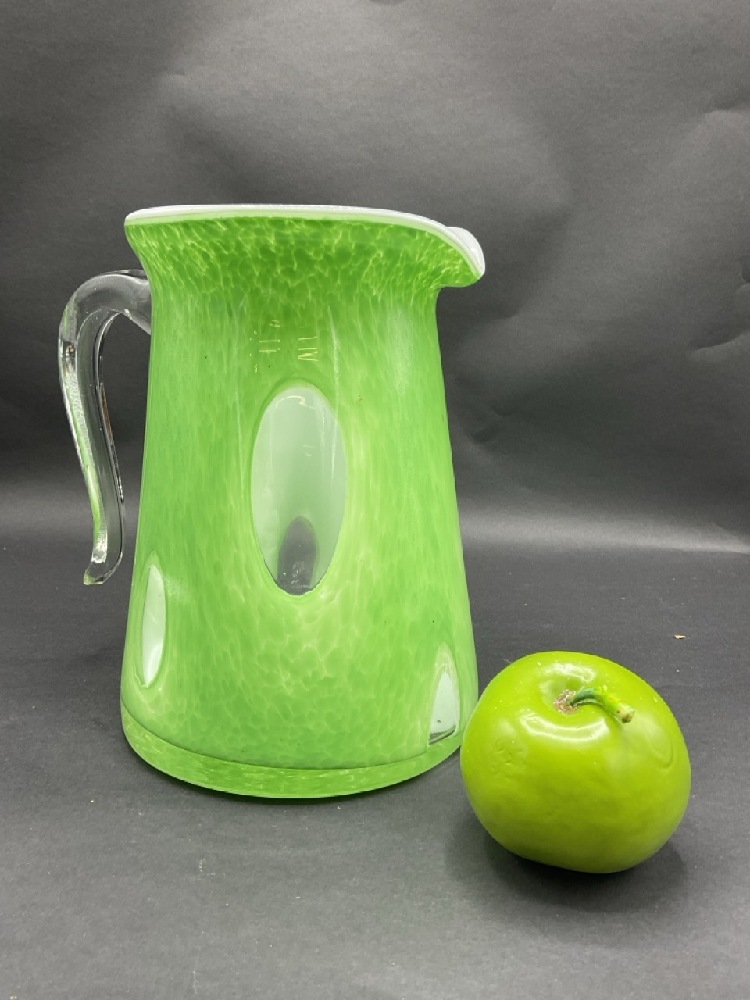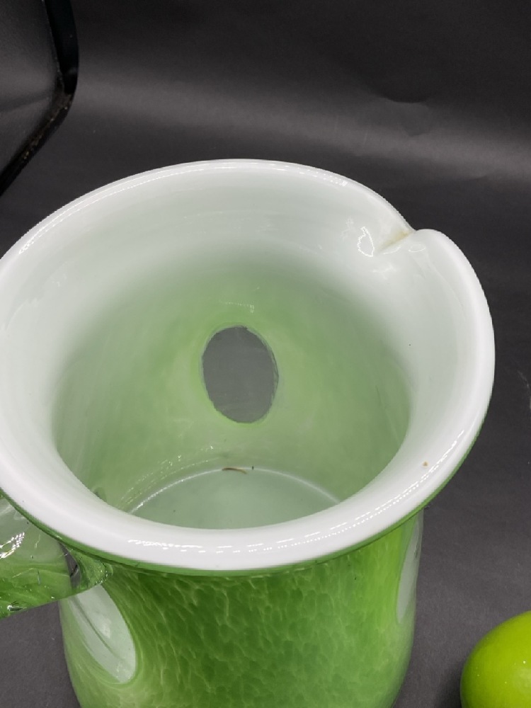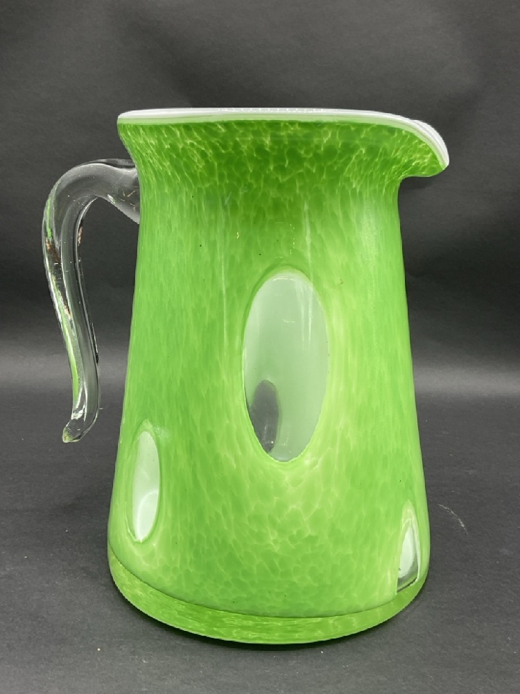 Large Murano Cased Glass Pitcher. Applied clear glass handle.