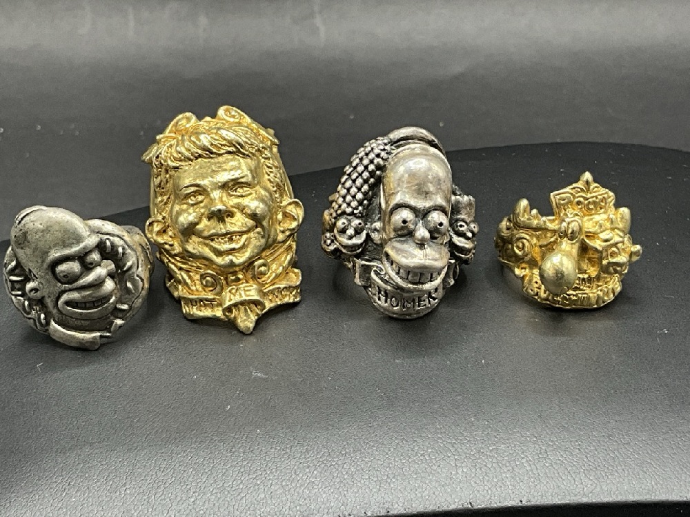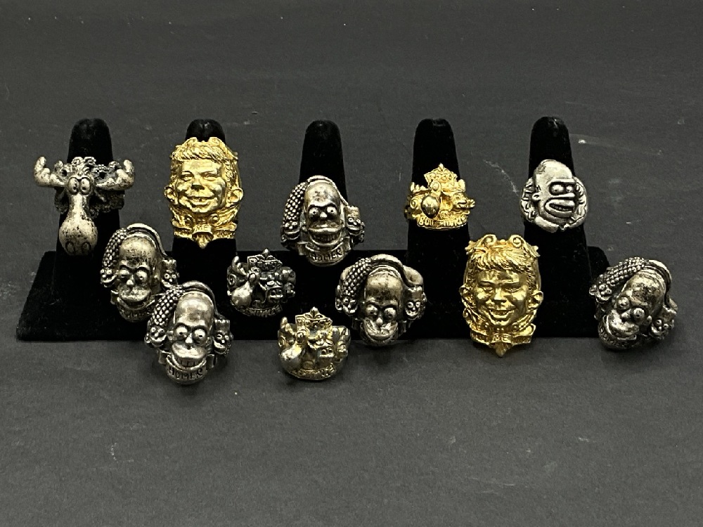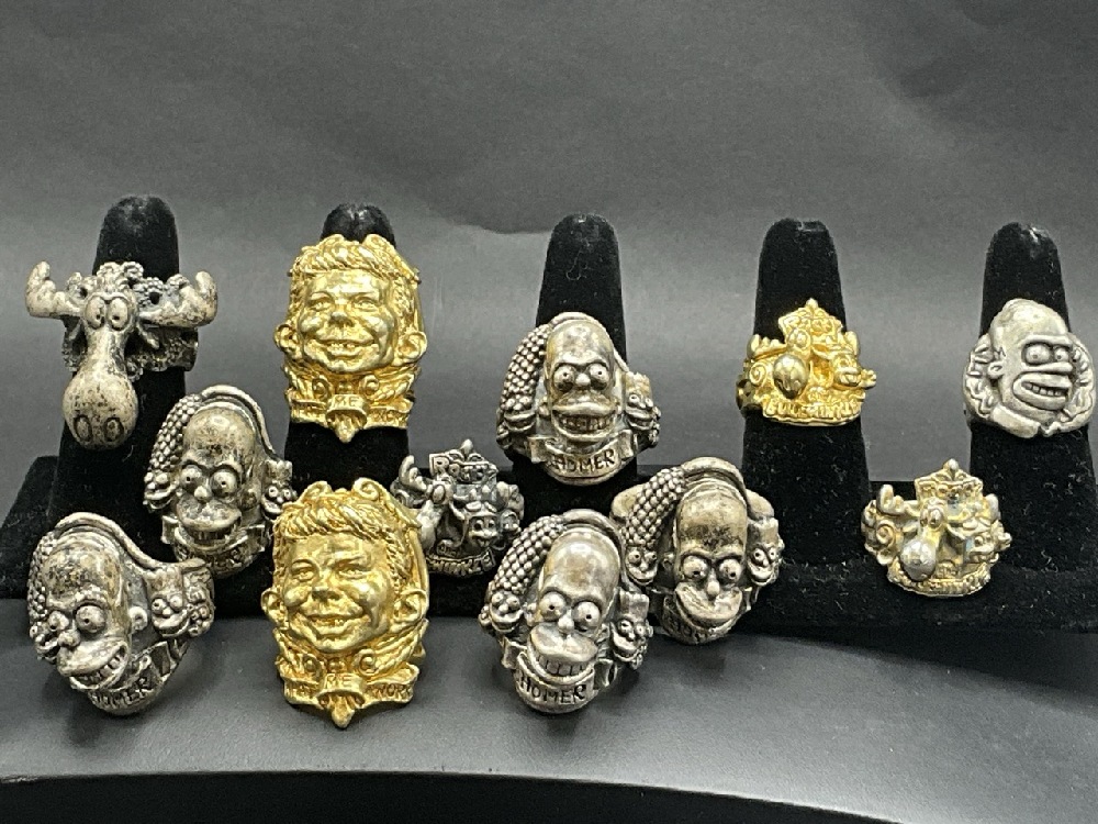 Sterling Silver 12 pcs Rings Including (4) Bullwinkle, (6) Homer Simpson, (2) Mad 460 Grams