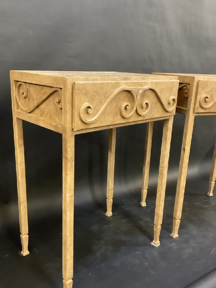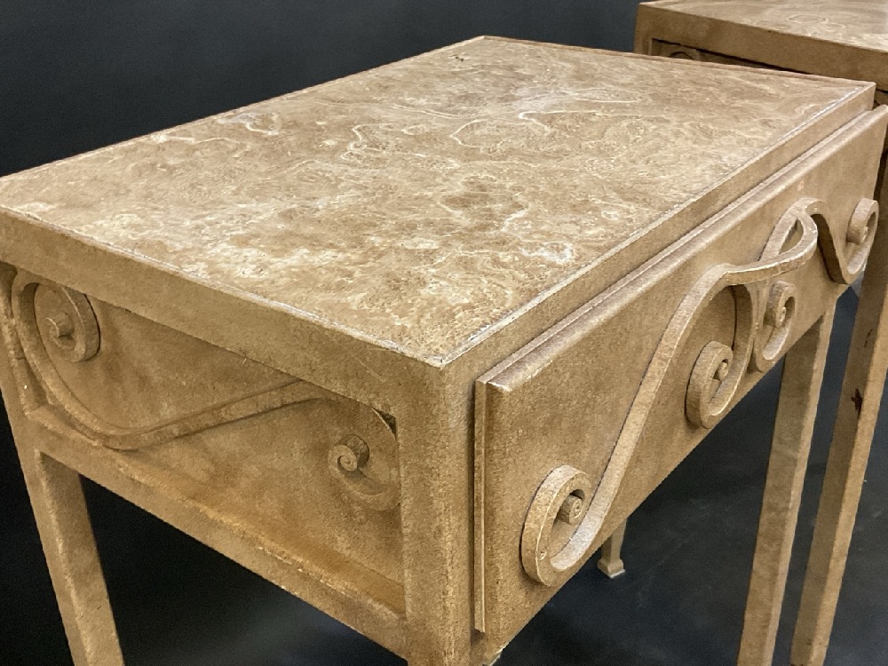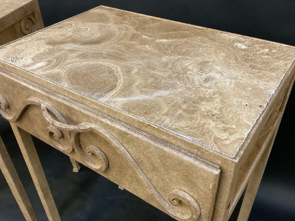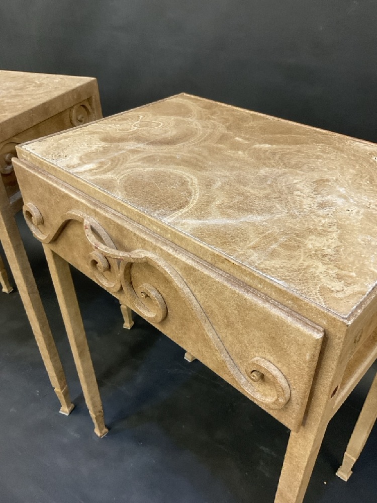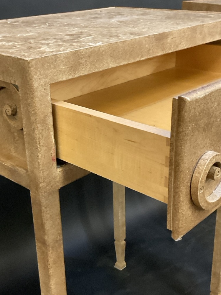 A Fine Custom Pair of High Bed Side Stands with Granite Tops and Dovetailed Drawers.