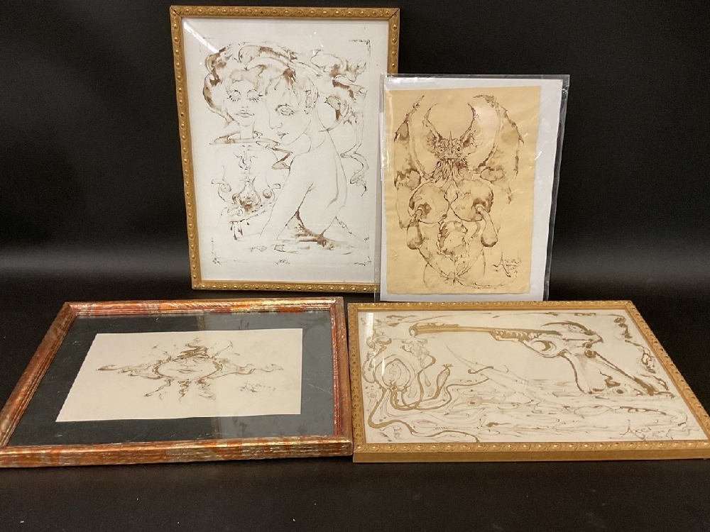 c. 1990's Original Paintings "Blood Art" by Axel Starks. Four Works Framed. 16" X 20" and smaller. Signed and Dated 1994-98.