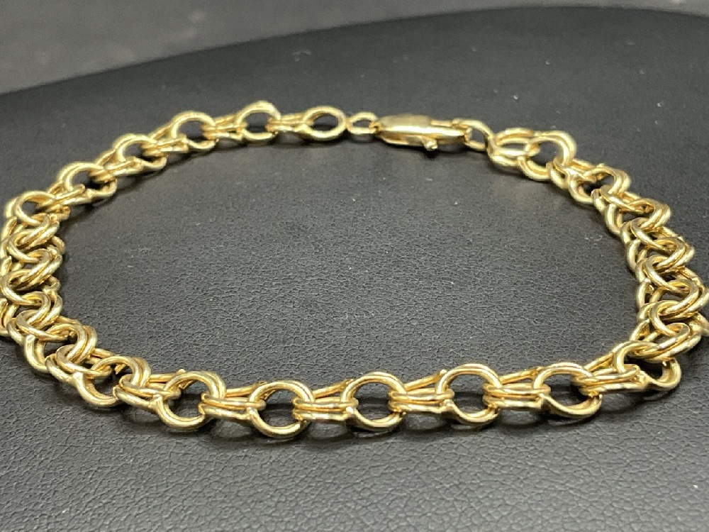 14K Yellow Gold Double Link Bracelet. Dimensions: 7 1/4”