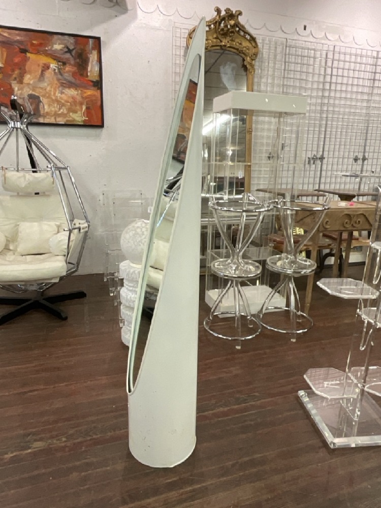 Mid Century Unghia Lipstick Floor Mirror. Some finish loss and wear to mirror. One Owner. Overall good.