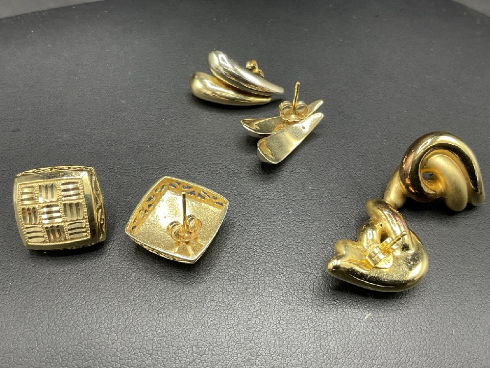 Three (3) Pairs, 14K Yellow Gold Earrings. Total weight: 11.13 grams.