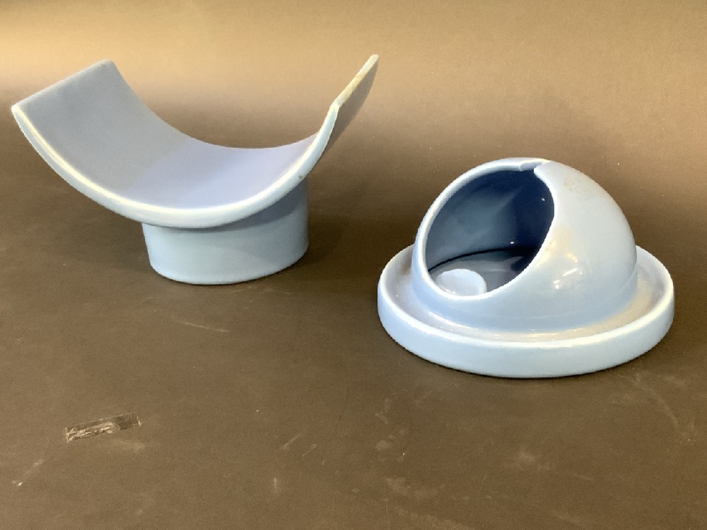 Dimension of ashtray 3.5” x 5.5” x 5.5” Vohann Of Calif, Inc Desk Accessories. Ashtray and receiving dish. Ceramic MCM. Please see photograph preview