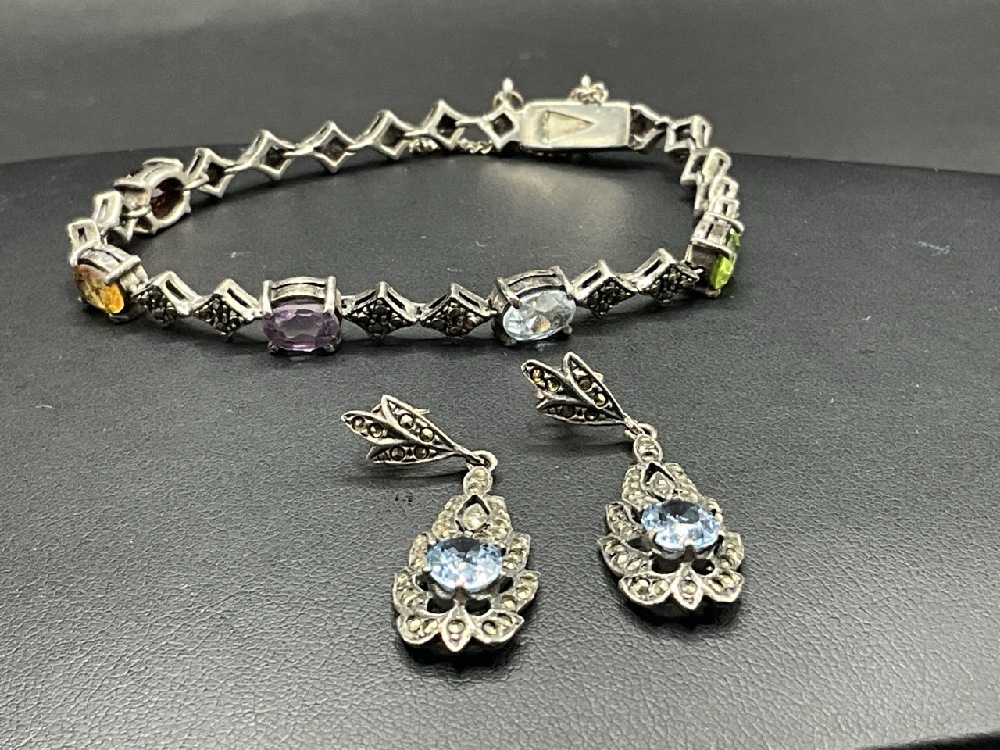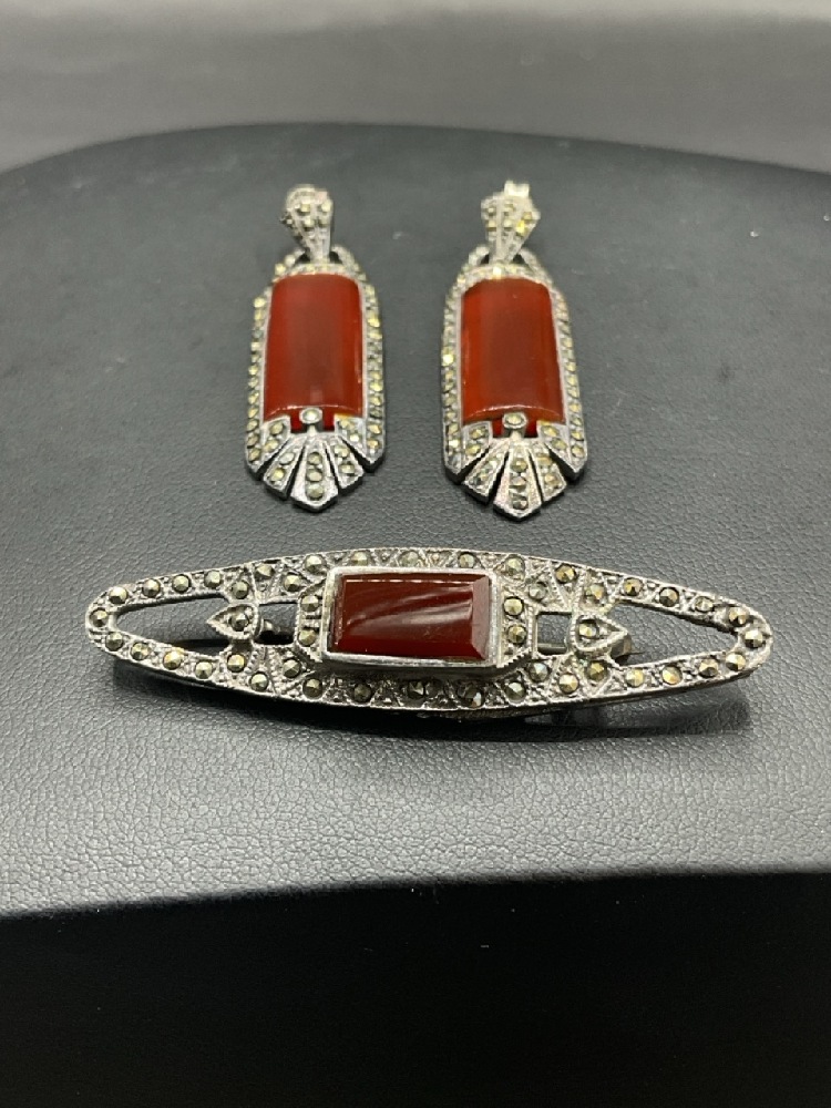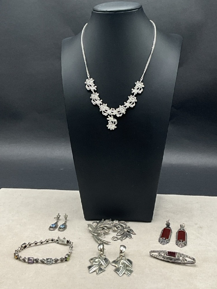 Sterling Silver Jewelry Lot Including Sterling Marcasite and Carnelian