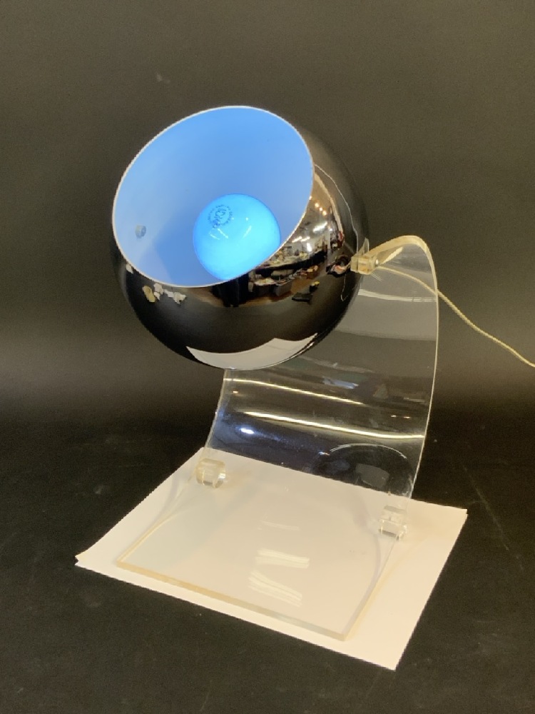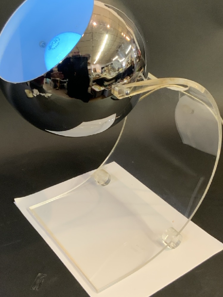 Mid century Robert Sonneman curved eyeball arched table lamp.