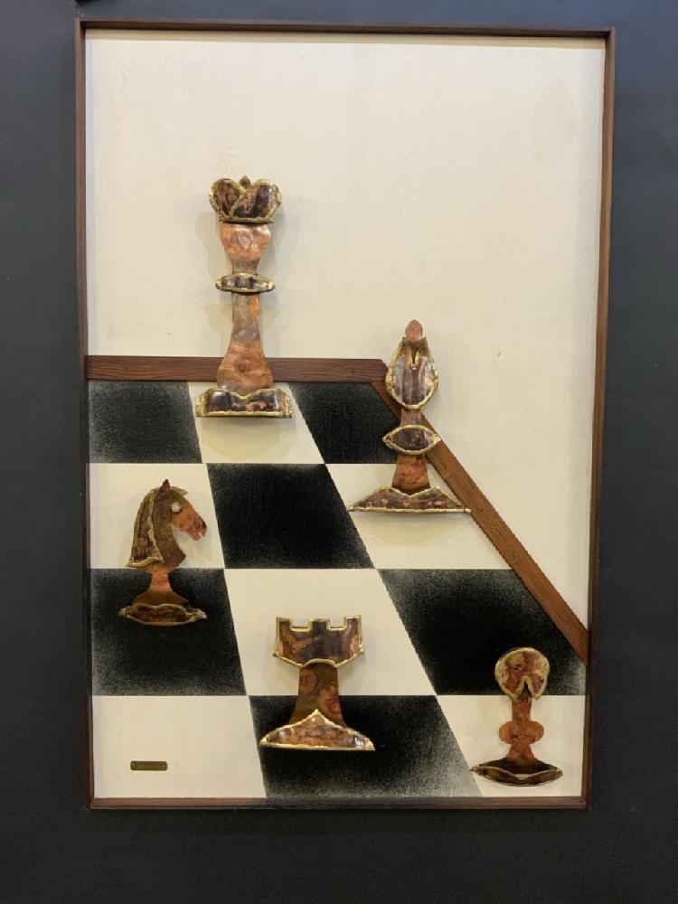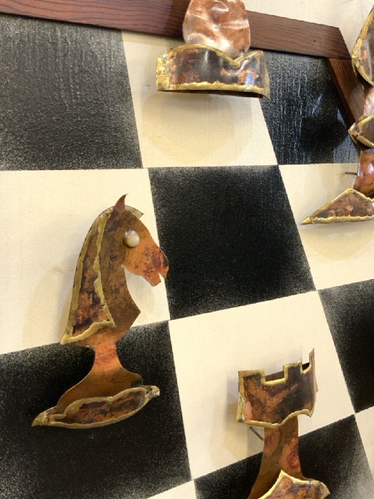 Singed Alex Kovacs Mid Century Modern Copper Chess Board Wall Art.