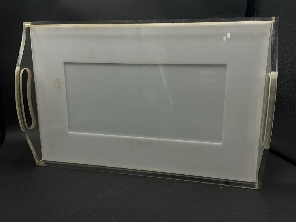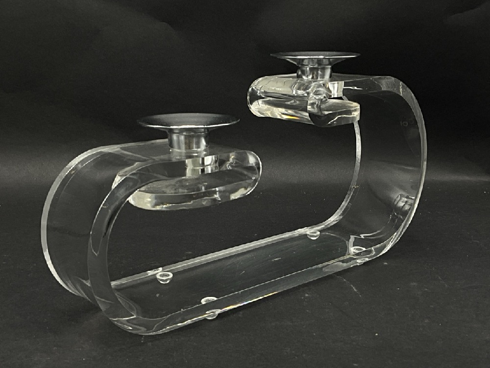 Lucite Entertaining Tray Handcrafted by George Bullio, Candle Holder, Cake Pedestal, and S/P Shakers