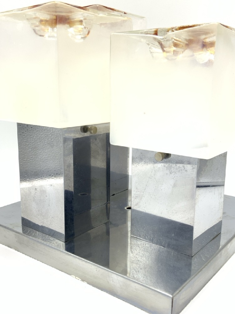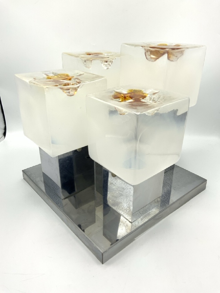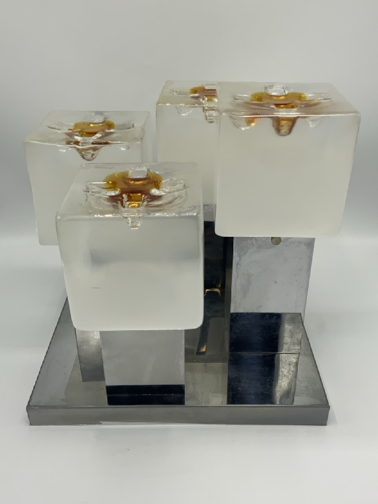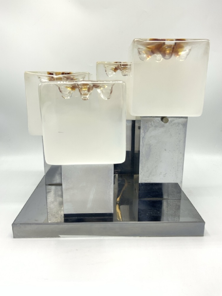 Italian Murano Light Fixture (4) Glass Shades with Chrome Fixture. Shades in fine condition. Working order. Removed from ceiling before image could be taken. Please see photograph preview.