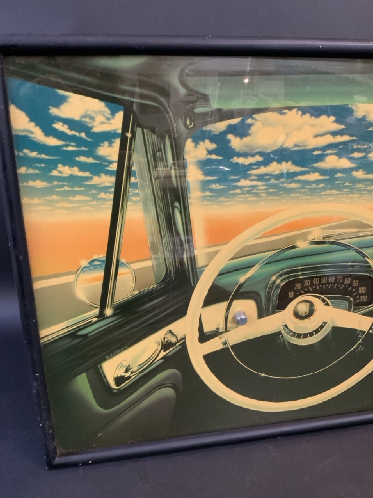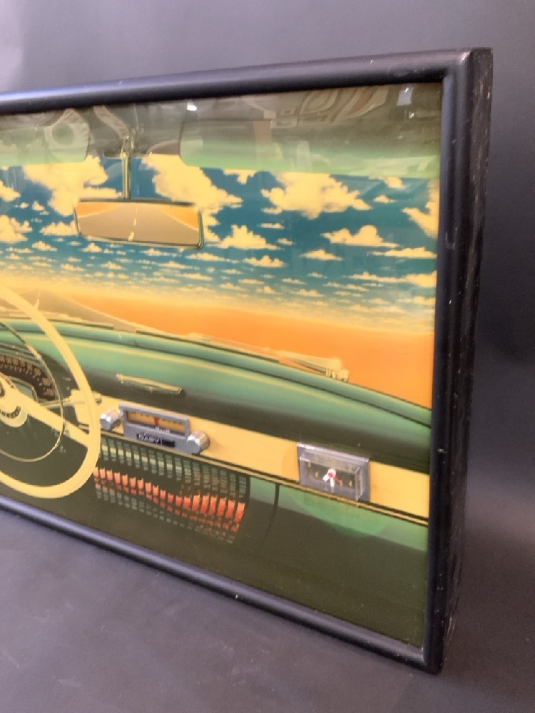 Vintage Dapy Pans 3D Art MCM Cadillac Dashboard Clock. Displayed many years in auto body office.