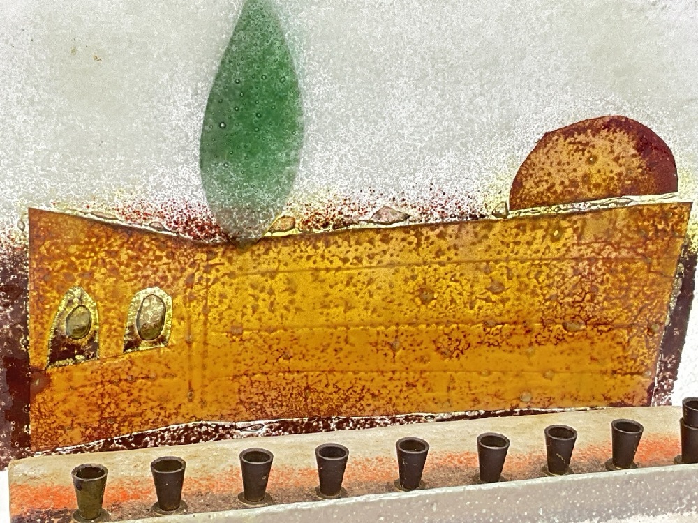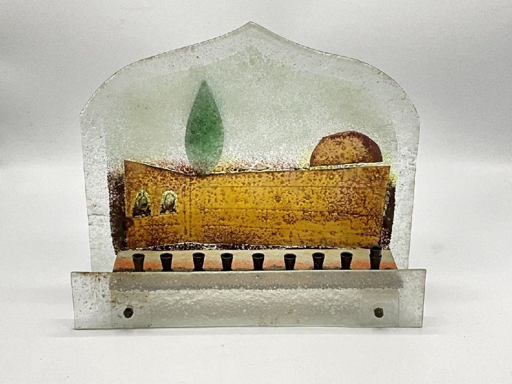 Israeli MCM Frosted Judica Glass Menorah.