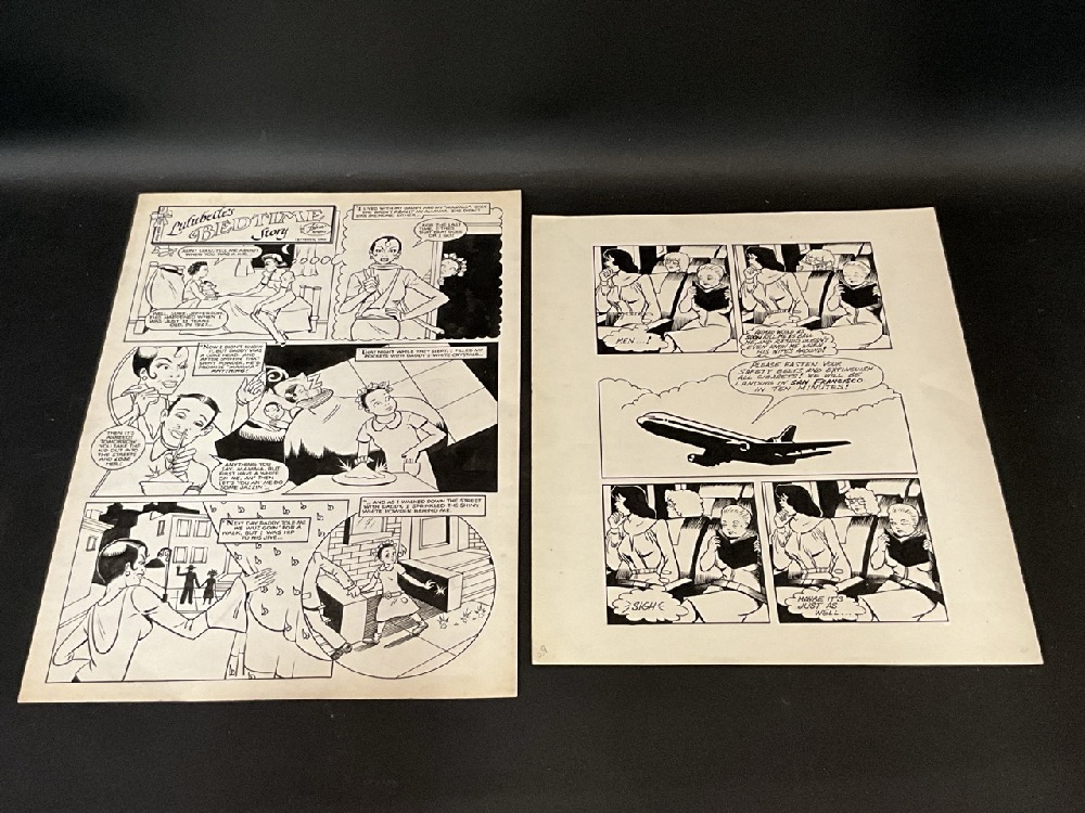 Trina Robbin’s Original Lulubelle’s Bedtime Story Comic Strip Pen In Ink 2Pc.
