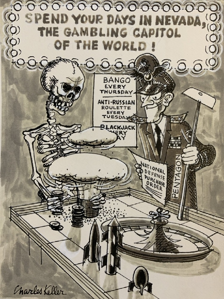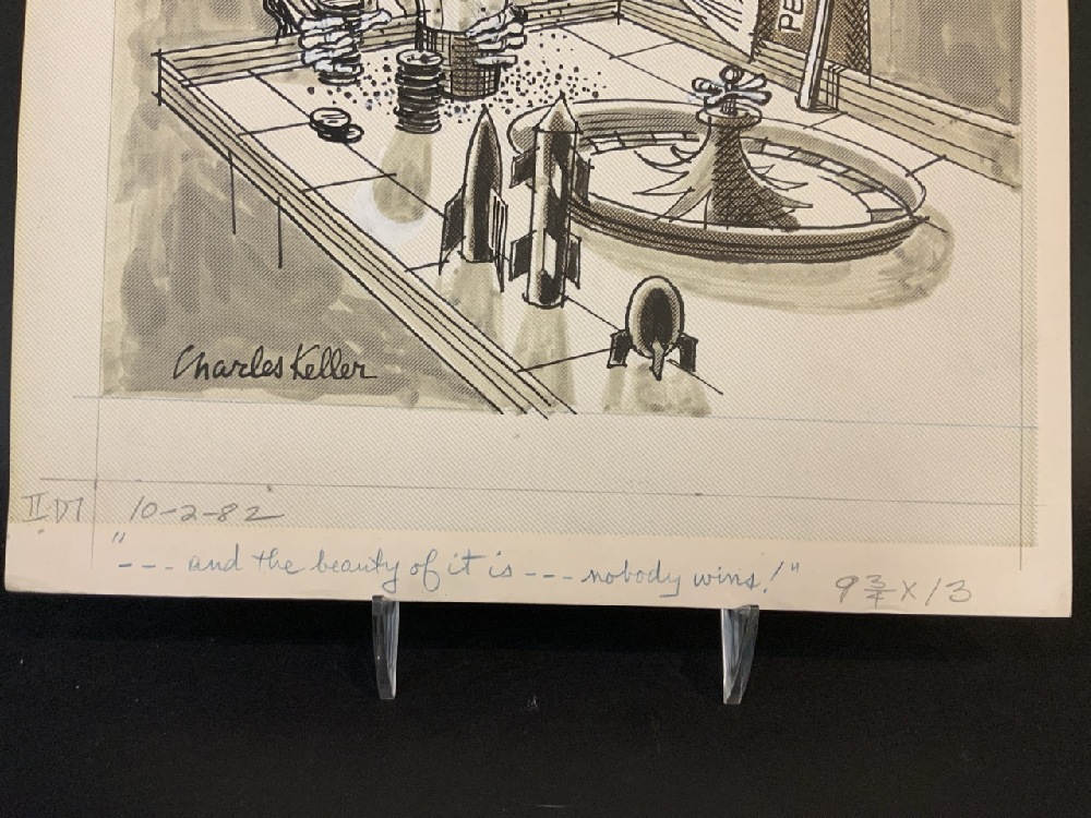 Charles Keller American (1914-2006) Political Cartoon 10/2/82 Titled “and the beauty of it is….nobody wins!”.