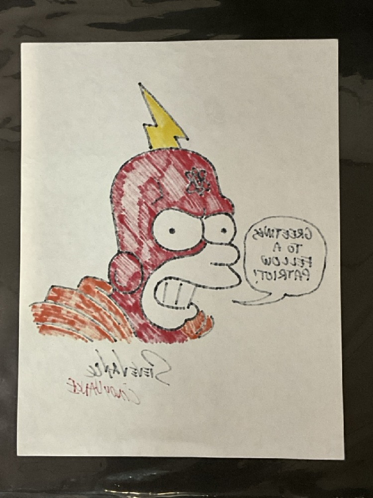 Homer Simpson, Greetings To A Fellow Patriot Original Drawing Signed By Steve Vance & Cindy Vance