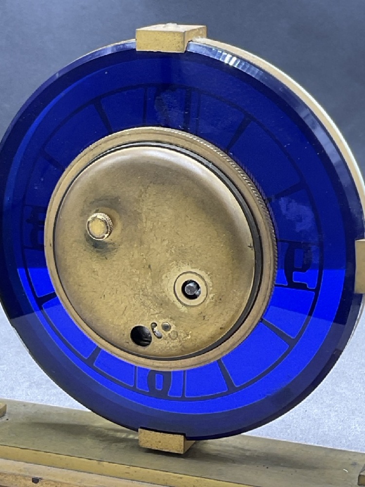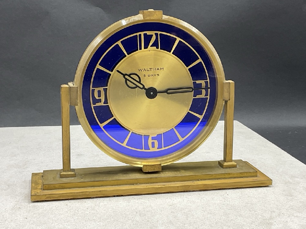 Waltham Art Deco 8 Day Clock Brass and Cobalt Blue.