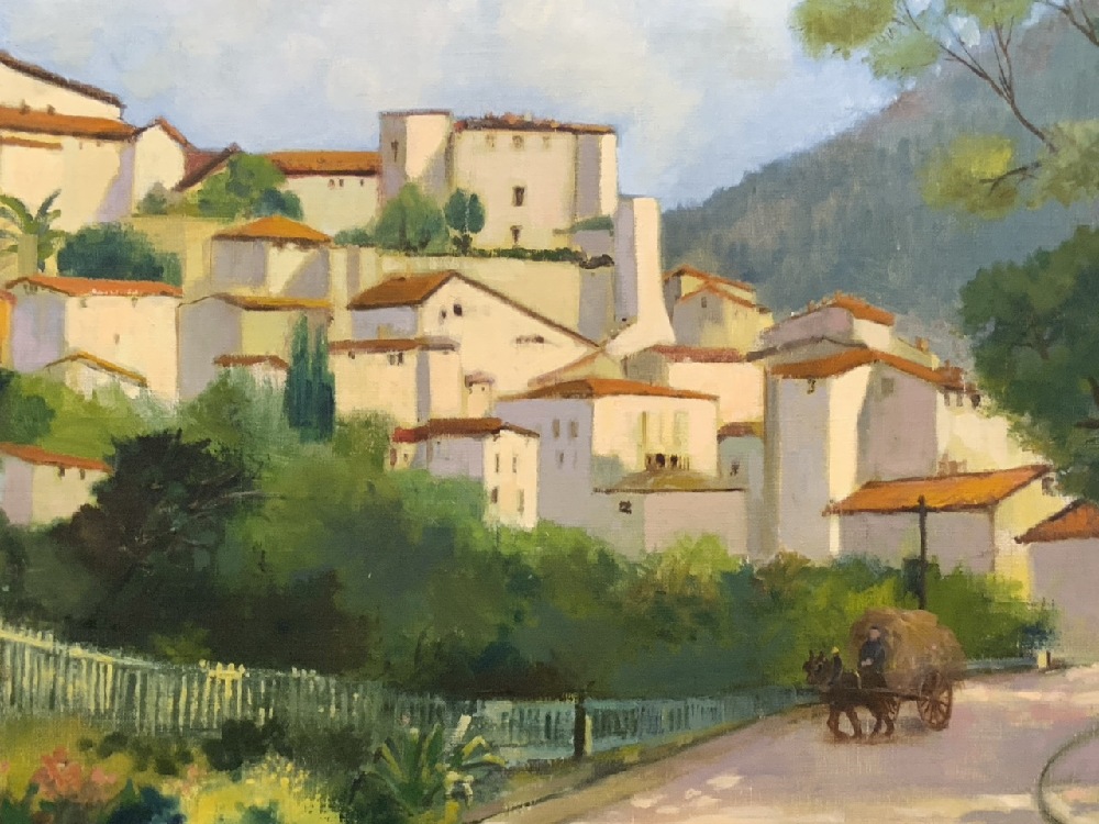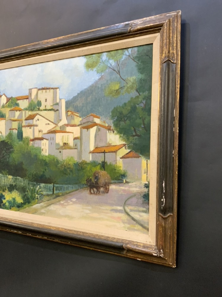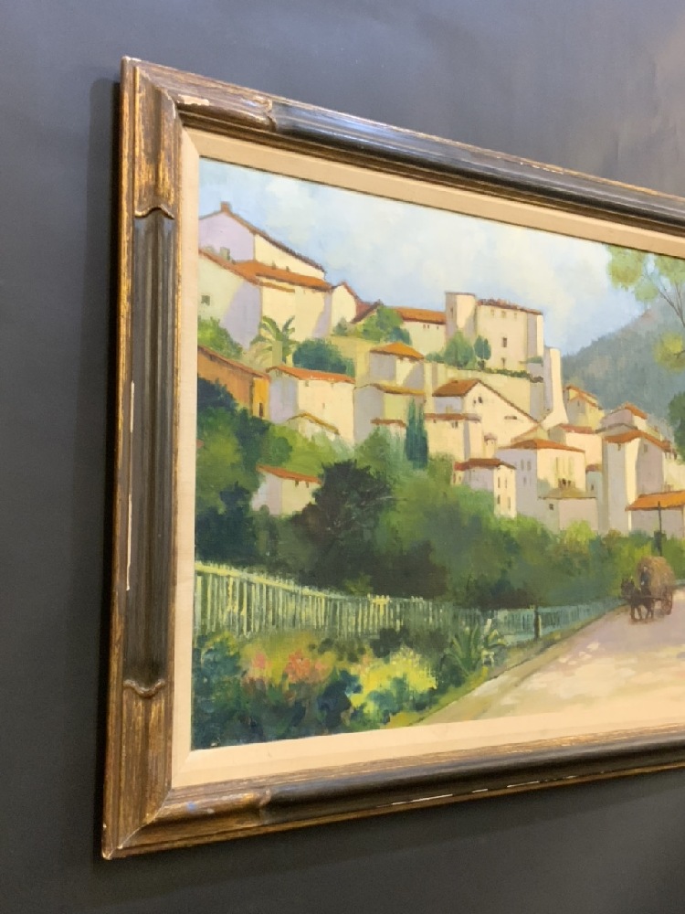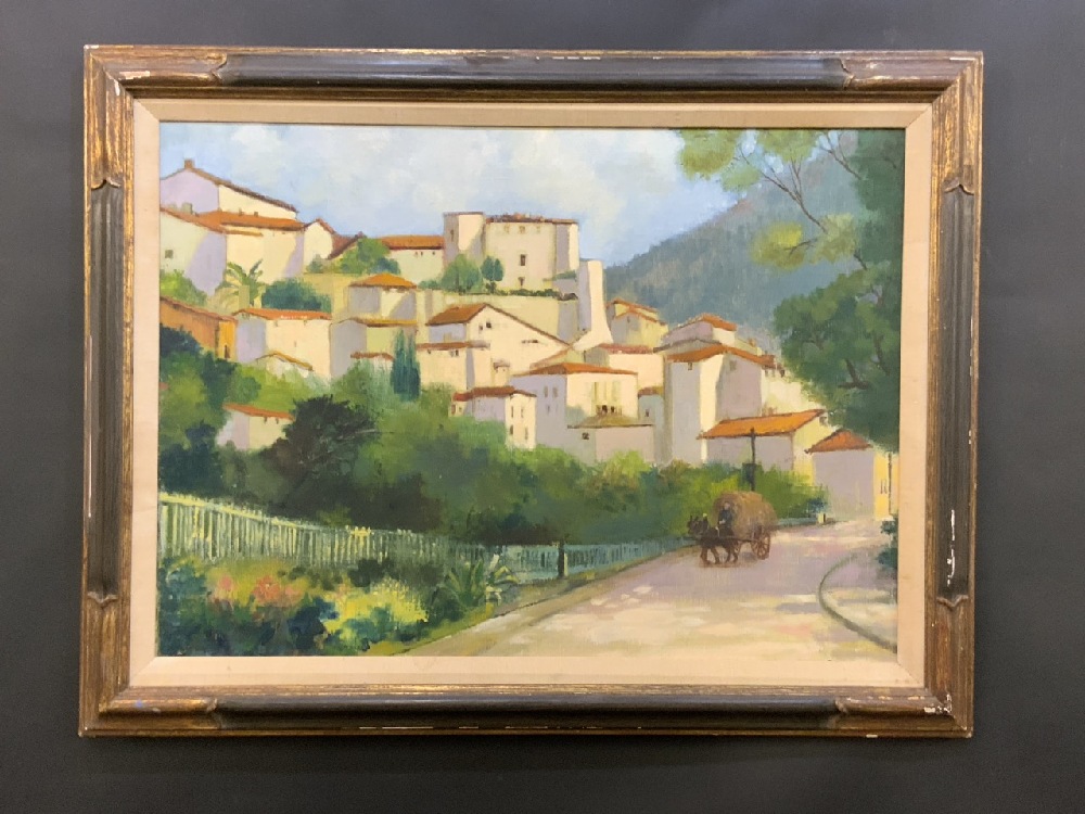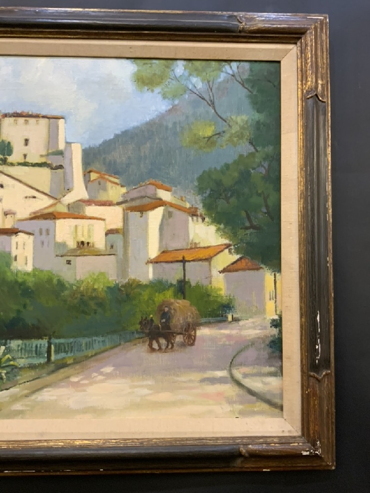 Oil on Canvas Mediterranean Village Scene - Unsigned.