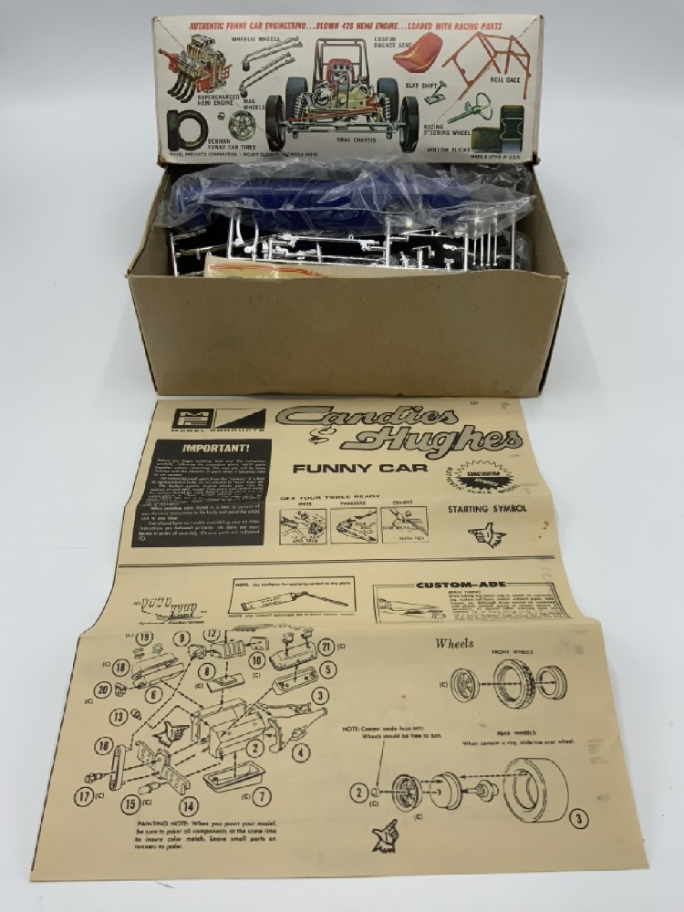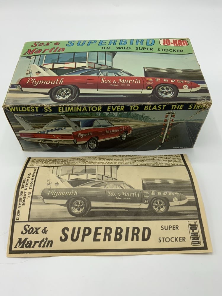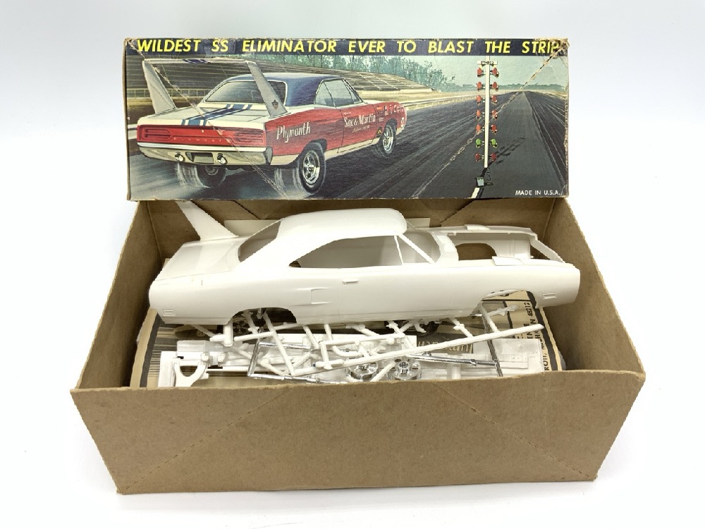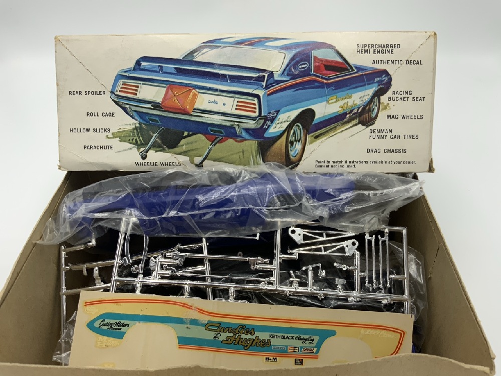 Vintage Car Models - Candies & Hughes Funny Car - Sox & Martin and Superbird by Jo-Han The Wild Super Stocker. Both are unused. Decals are dried out and have some soiling on paper.