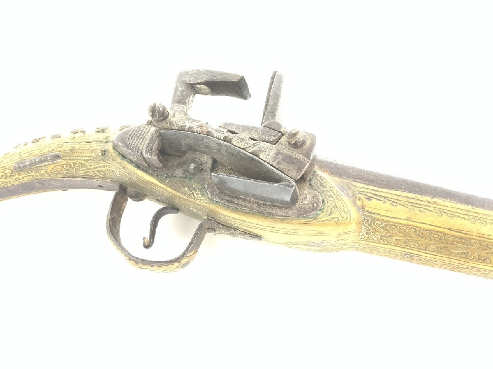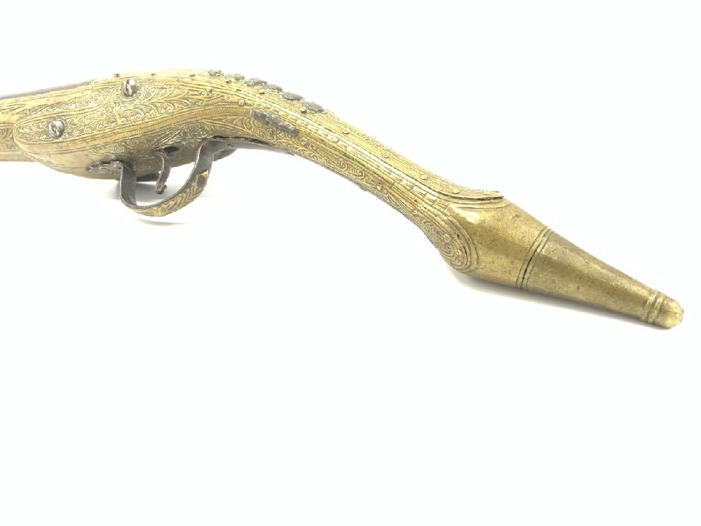 Albanian Rat Tail Pistol w/ Brass Engraving To The Stock & Barrel