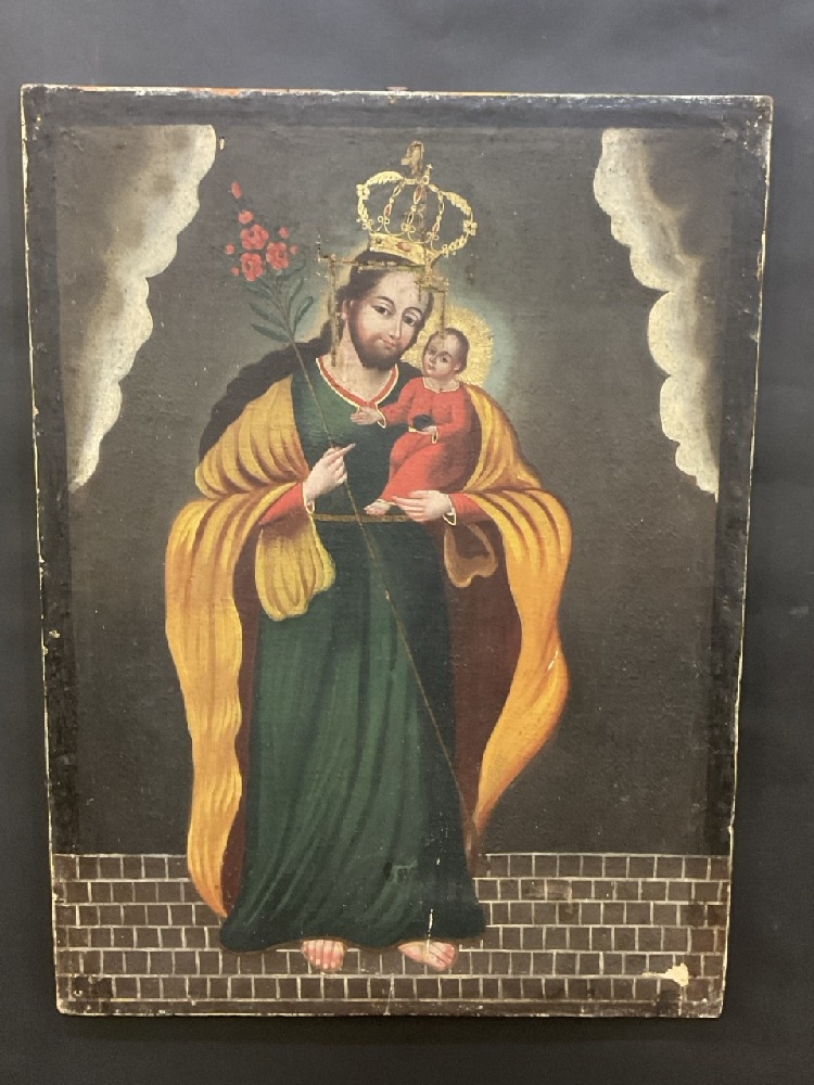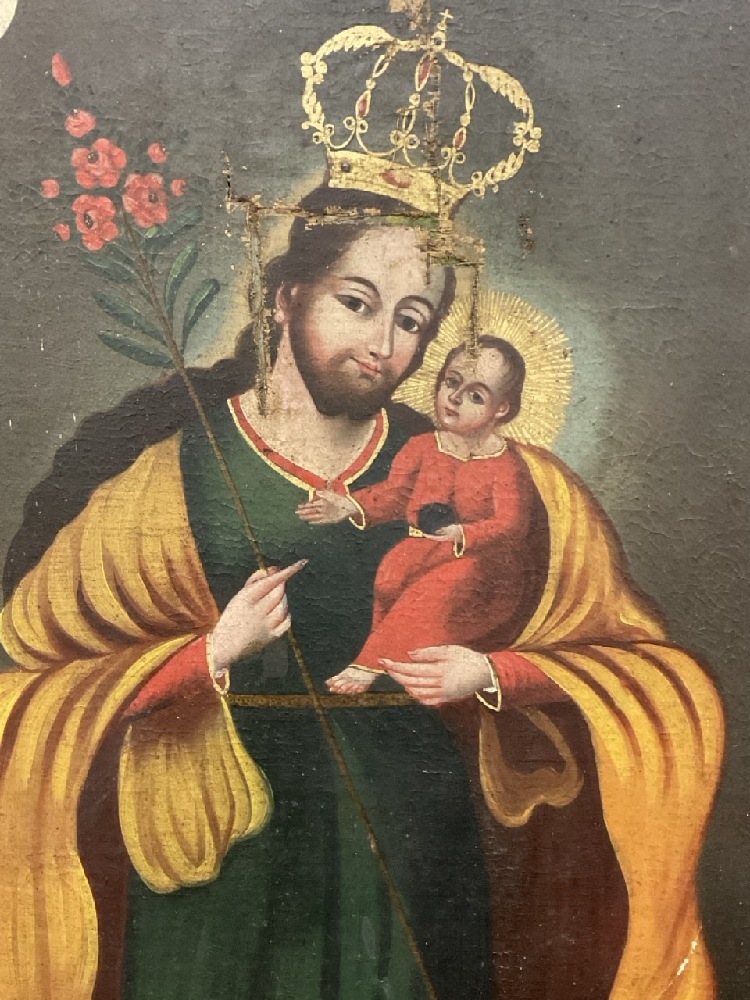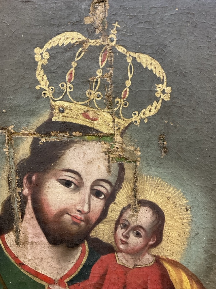 Spanish Colonial 19th Century Oil Painting. "Christ the King"