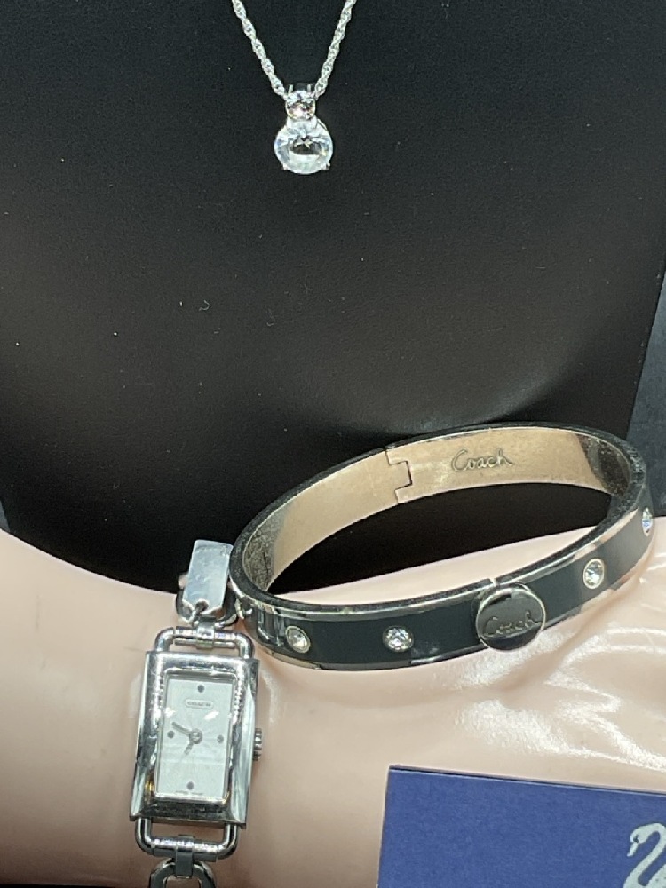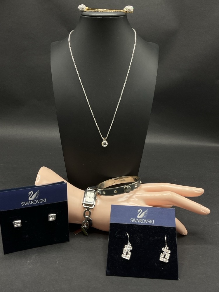 One Coach Watch, One Coach Bracelet, Two Swarovski Earrings , One Swarovski Heart Stick Pin.